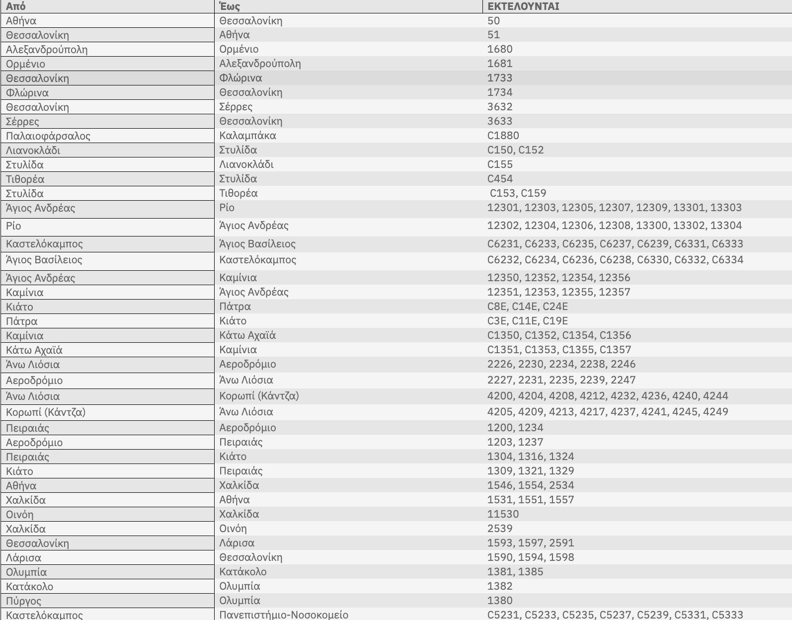 Αλλαγές στα δρομολόγια