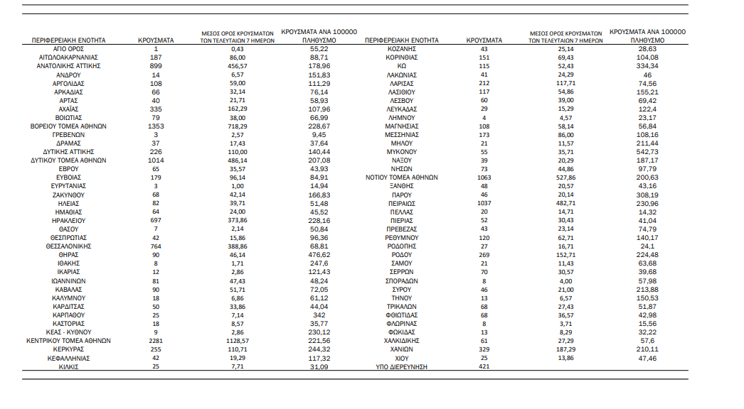 Στο «κόκκινο» παραμένει η Αττική, με 7.946 μολύνσεις να εντοπίζονται στο Λεκανοπέδιο. Στη Θεσσαλονίκη καταγράφηκαν 764 νέες μολύνσεις.