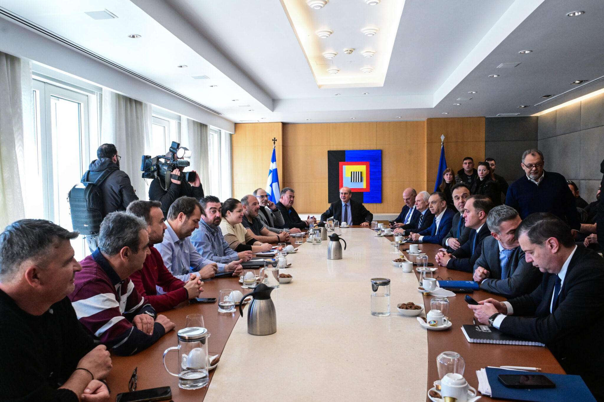 Η συνάντηση πραγματοποιήθηκε σε καλό κλίμα και διήρκησε κοντά στις 3 ώρες. Σύμφωνα με πληροφορίες, στη συνάντηση τέθηκαν επί τάπητος τα ζητήματα του ΑΤΑΚ και του ΚΑΕΚ, ενώ δόθηκαν περαιτέρω διευκρινίσεις για όσα συζητήθηκαν στη χθεσινή συνάντηση με τον πρωθυπουργό.