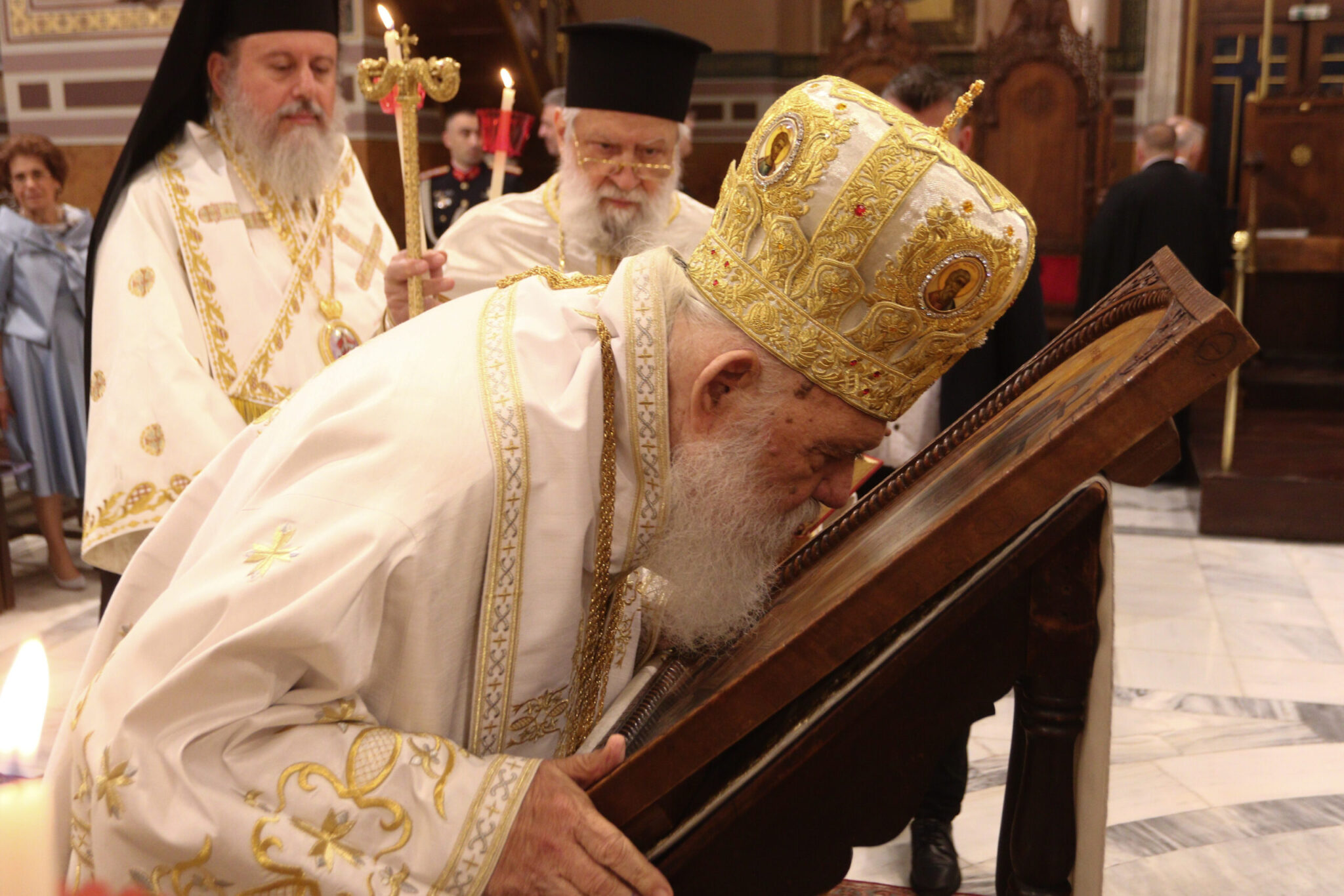 Ο Προκαθήμενος της Ελλαδικής Εκκλησίας πλαισιώθηκε από τους επισκόπους Ευρίπου Χρυσόστομο και Ταλαντίου Θεολόγο.