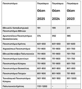 Οι θέσεις για τα υπόλοιπα ελληνικά πανεπιστήμια