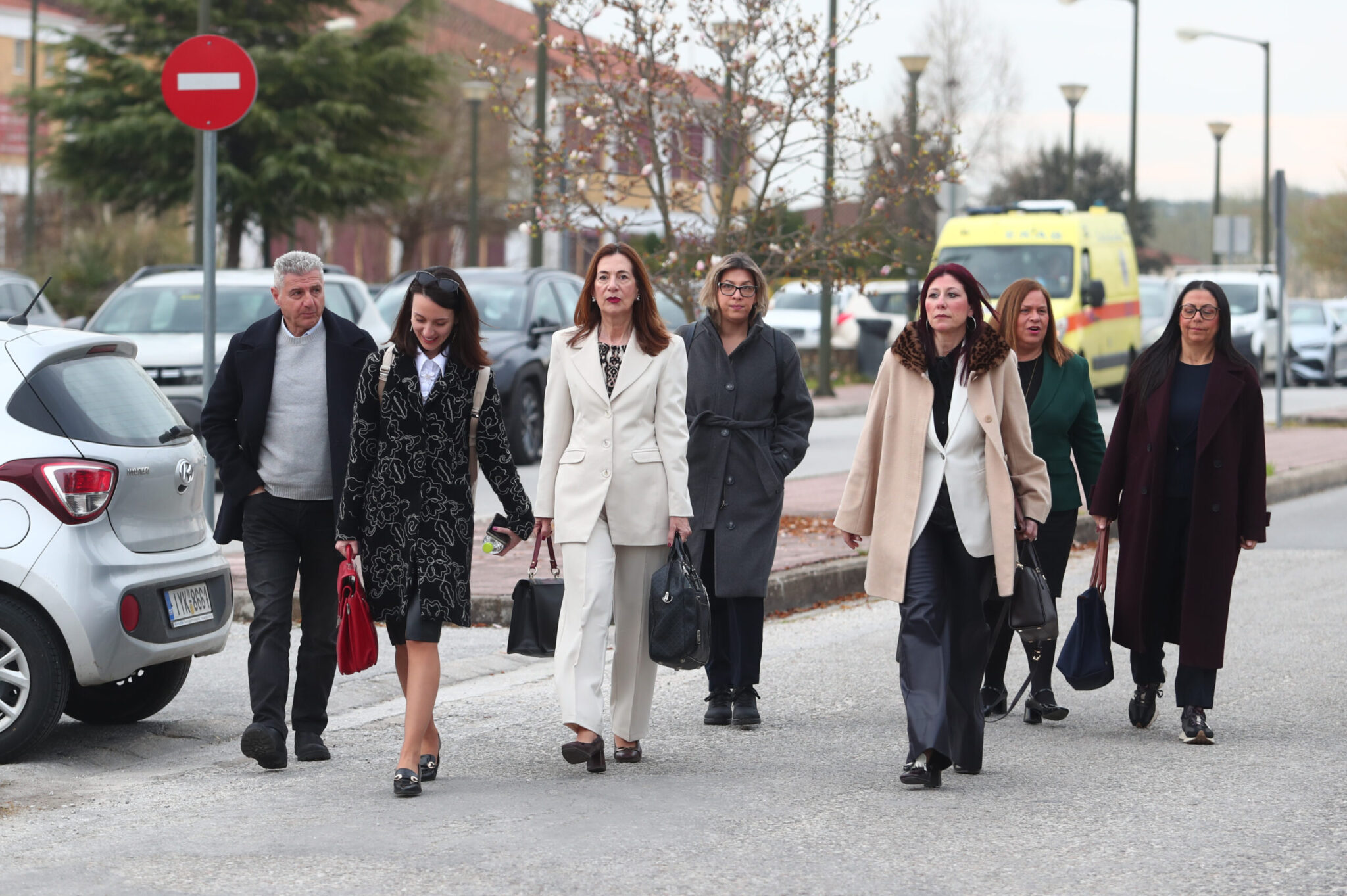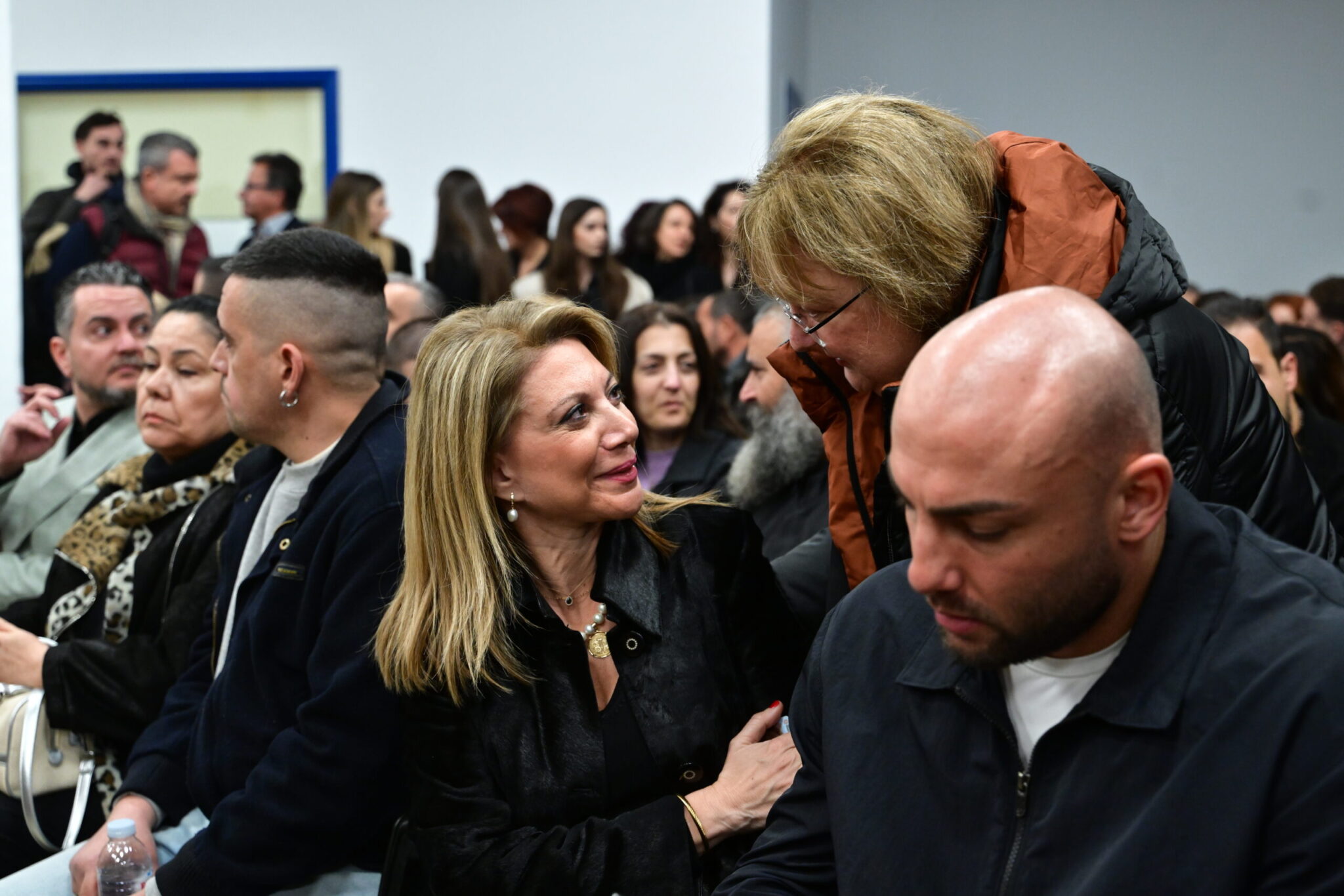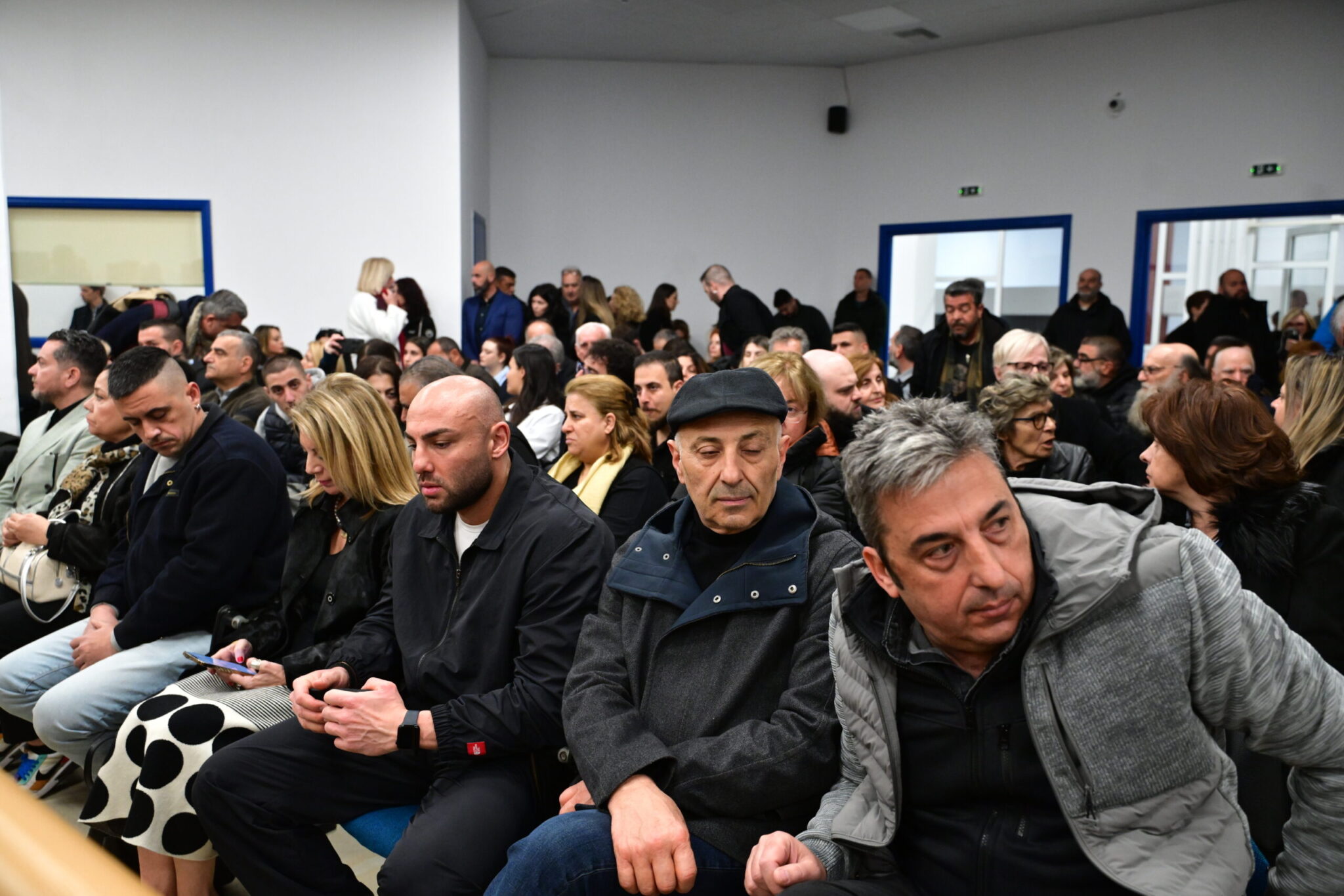 «Είμαστε στοιβαγμένοι σα σαρδέλες. Είναι τριτοκοσμικές συνθήκες και θα καταγγείλουμε πρόθεση να βγάλουν δημοσιογράφους έξω. Δεν μπορεί να γίνει δίκη με αυτές τις συνθήκες. Τραγικά πράγματα. Είμαι μία κίνηση απαξίωσης» καταγγέλλει η Μαρία Καρυστιανού.