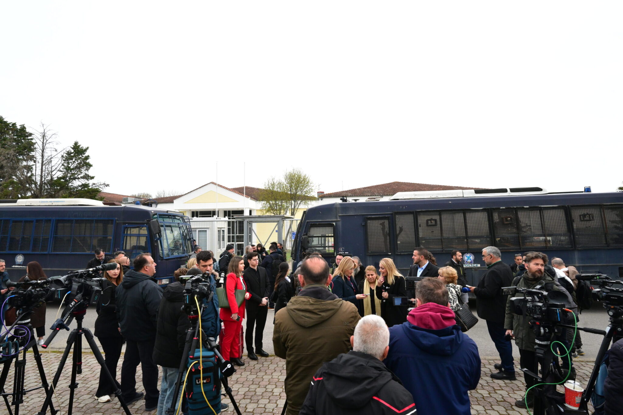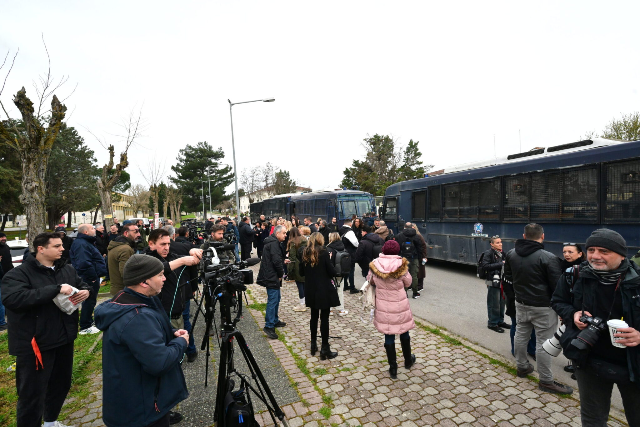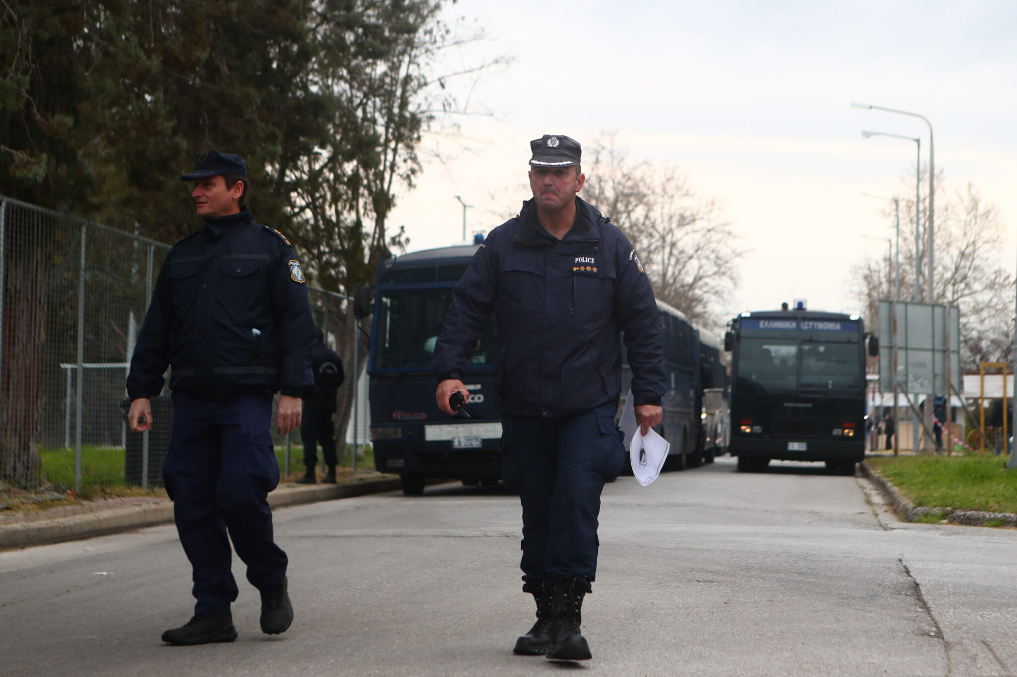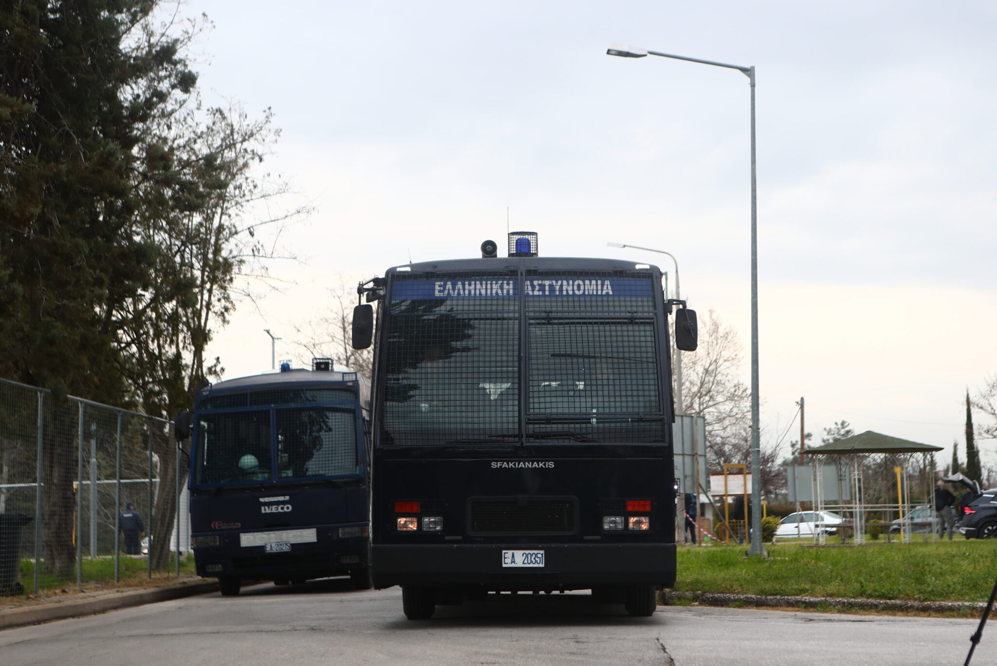 Τουλάχιστον 5 λεωφορεία ξεκίνησαν από τη Θεσσαλονίκη κατά τις επτά το πρωί, με προορισμό το συνεδριακό κέντρο του Πανεπιστημίου Θεσσαλίας (Γαιόπολις-πρώην ΤΕΙ), που έχει «μεταμορφωθεί» σε δικαστική αίθουσα.