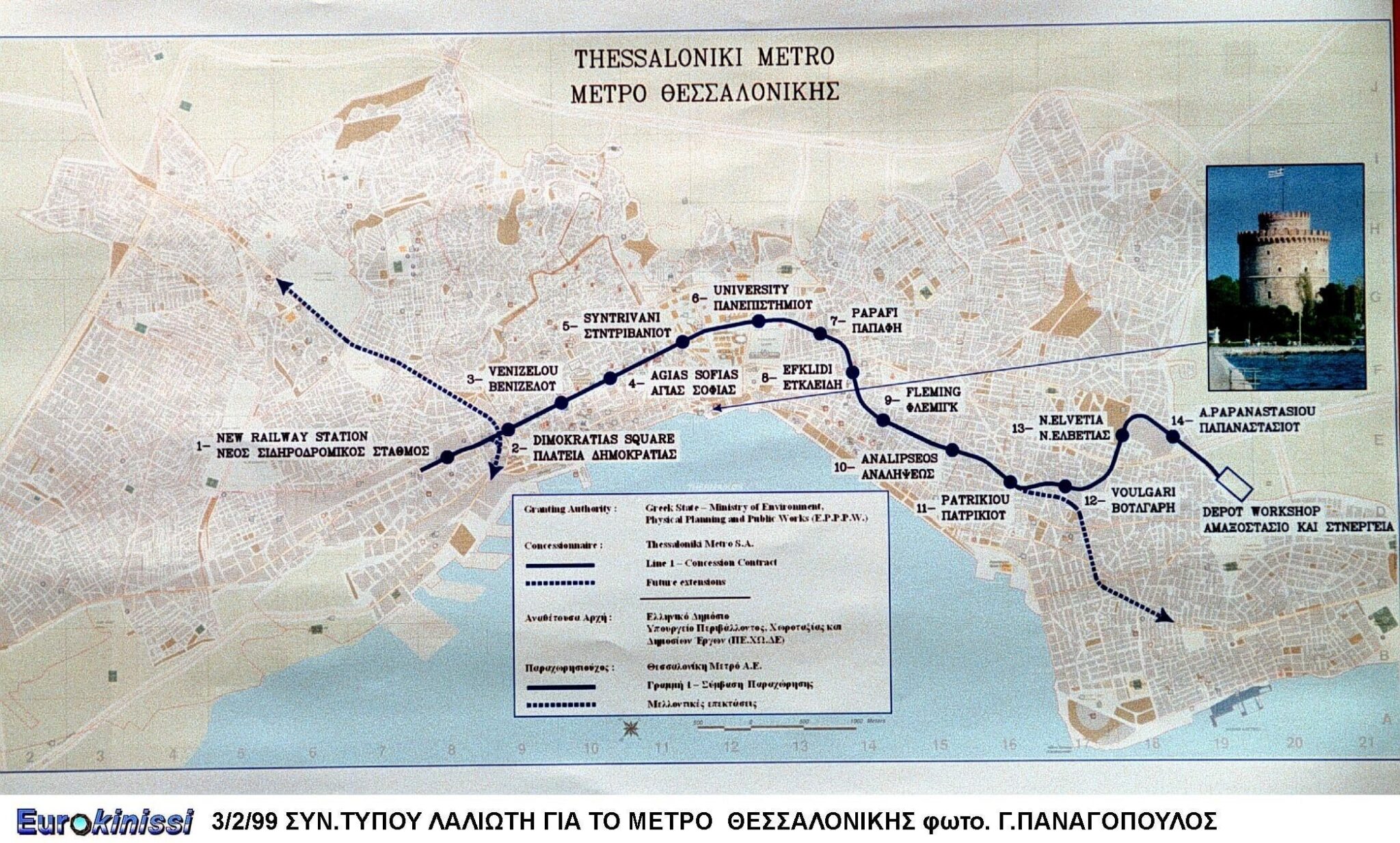Χάρτης του μετρό της Θεσσαλονίκης από το 1999: