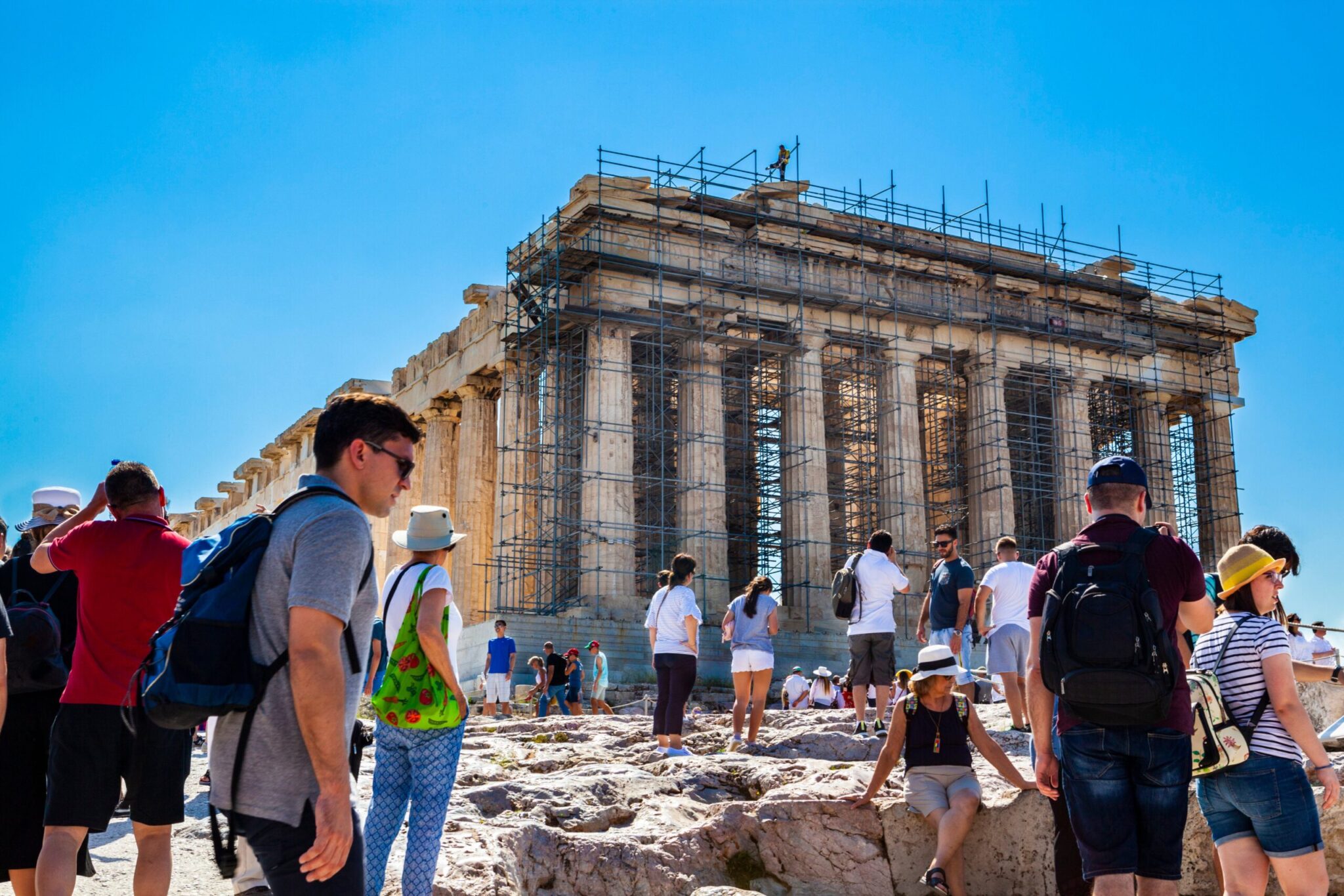 Αργά το απόγευμα τής Κυριακής φύλακας του αρχαιολογικού χώρου της Ακρόπολης παρατήρησε έναν νεαρό άνδρα να κινείται ύποπτα και να τοποθετεί αντικείμενα στις τσέπες του. Άμεσα κάλεσε την αστυνομία και στελέχη του ΑΤ Ακροπόλεως πήγαν στο σημείο.