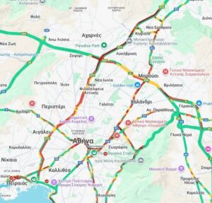 Καθυστερήσεις καταγράφονται και στη λεωφόρο Κηφισίας, με αυξημένη κυκλοφορία στο ρεύμα ανόδου έως την Αγία Βαρβάρα, αλλά και στο ρεύμα καθόδου από το ύψος του Νέου Ψυχικού.