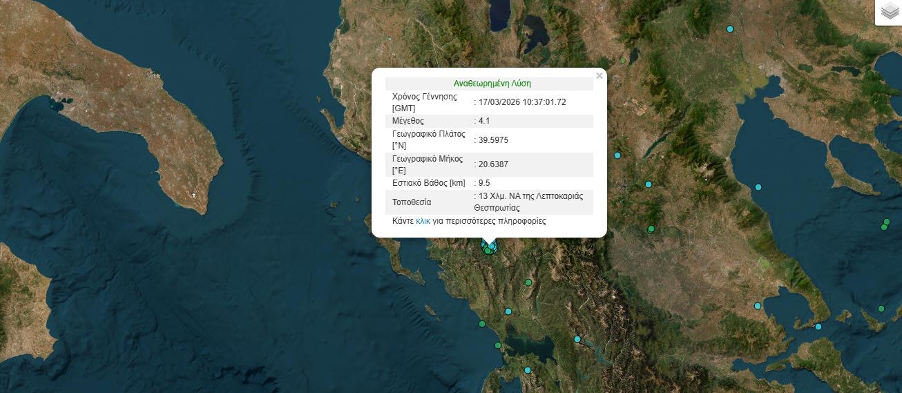 Νωρίτερα είχε προηγηθεί σεισμική δόνηση 4,1 Ρίχτερ στην Θεσπρωτία, χωρίς να έχει γίνει γνωστό εάν ο σεισμός συνδέεται με το εν λόγω περιστατικό της κατολίσθησης.