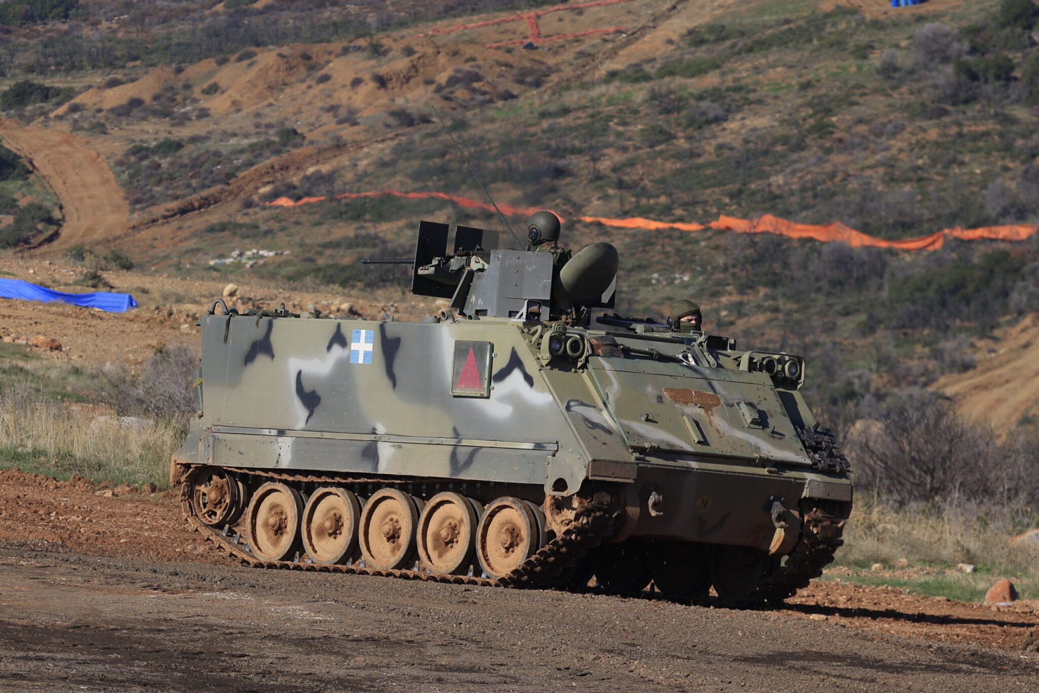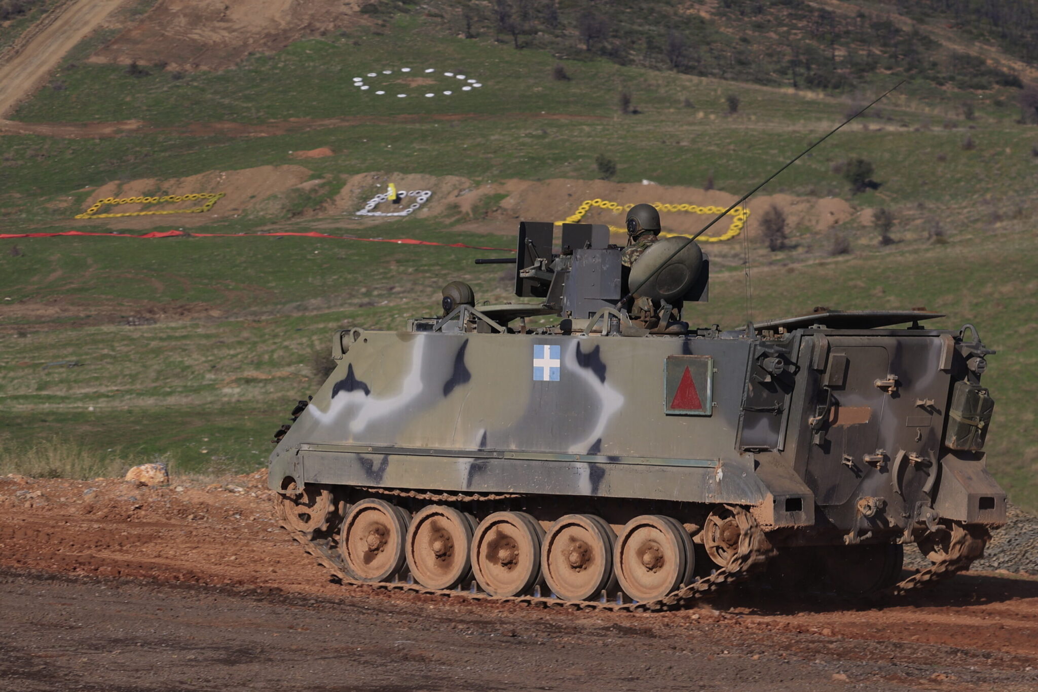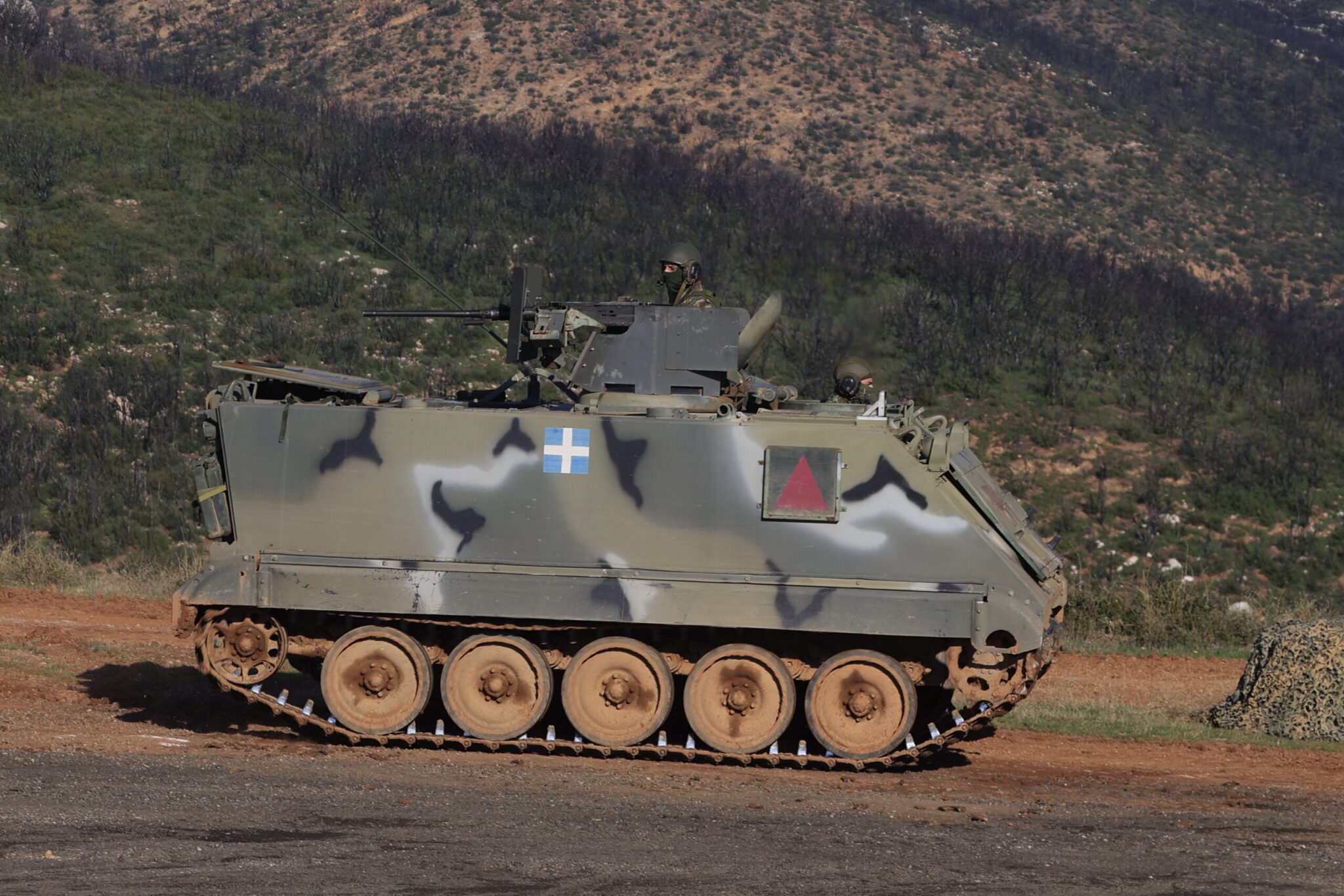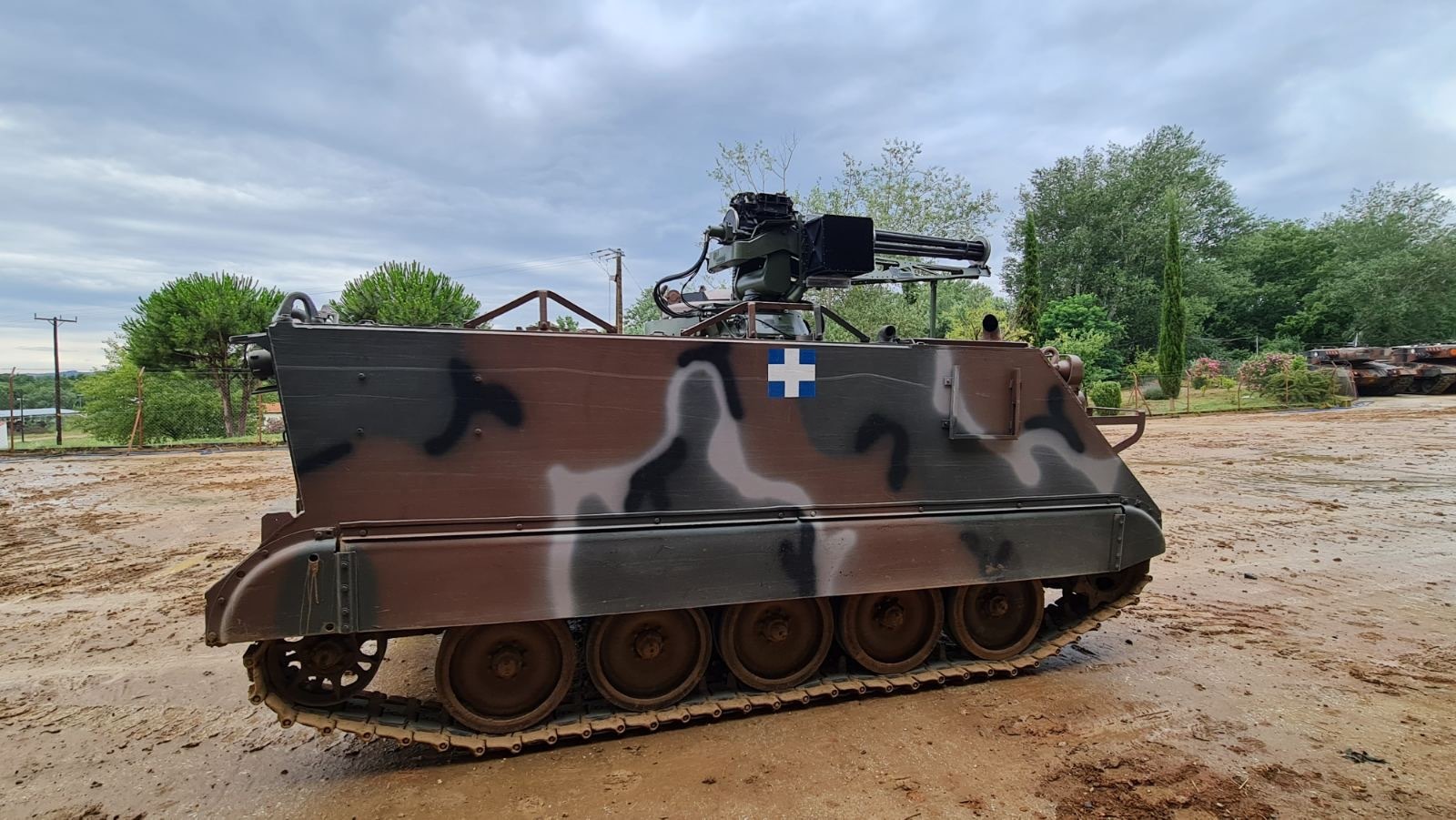 IA AE Αναβαθμισμένο ΤΟΜΠ Μ113 το οποίο είναι εξοπλισμένο με το κιτ εγκατάστασης του πολυβόλου Μ61Α1