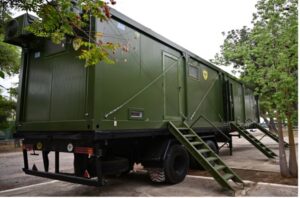 ΚΙΝΗΤΗ ΜΟΝΑΔΑ ΠΑΡΑΓΩΓΗΣ DRONE- Έχει κατασκευαστεί από το 306 Εργοστάσιο Βάσης Τεχνικού, διαθέτει σύγχρονο εξοπλισμό και συσκευές τρισδιάστατης εκτύπωσης για την παραγωγή ανταλλακτικών drone στο πεδίο της μάχης.