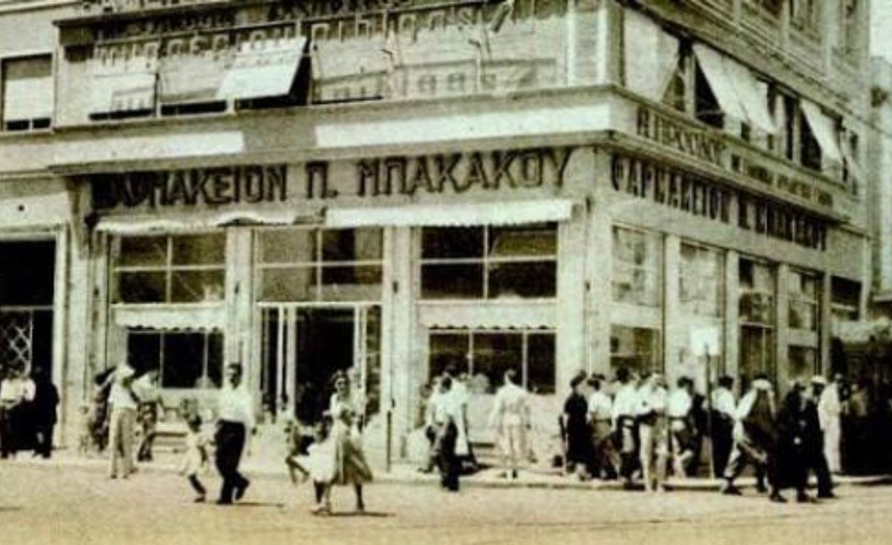 Το ιστορικό φαρμακείο της Ομόνοιας, ιδρύθηκε το 1917 από τον Πέτρο Μπακάκο και τον χημικό Ανδρέα Σακαλή, και έγινε για δεκαετίες, ίσως το πιο αναγνωρίσιμο σημείο συνάντησης στο κέντρο. «Θα σε περιμένω στου Μπακάκου» έλεγαν οι Αθηναίοι, και δεν χρειαζόταν άλλη εξήγηση. Το φαρμακείο ξεπέρασε γρήγορα τη λειτουργία του ως επιχείρηση και έγινε κομμάτι της ίδιας της τοπογραφίας της πόλης.
