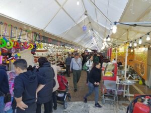 Η δυνατή πανηγυριώτικη μουσική από τα ηχεία, αποδεικνύεται αδύναμη να παρασύρει τον κόσμο σε «εορταστικό κλίμα» και ελάχιστοι δέχονται τις προσκλήσεις των οργανωτών να χορέψουν σε μία πρόχειρη πίστα που έχει οριοθετηθεί στον χώρο.