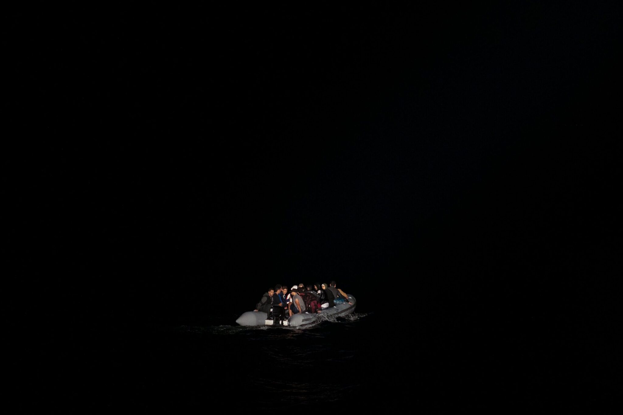 Στελέχη του ελληνικού λιμενικού φωτίζουν με φακούς 23 πρόσφυγες και μετανάστες από τη Συρία, το Ιράκ, την Παλαιστίνη και το Ιράν, που είχαν ξεκινήσει από κοντινή Τουρκία με προορισμό τη Σάμο. ASSOCIATED PRESS