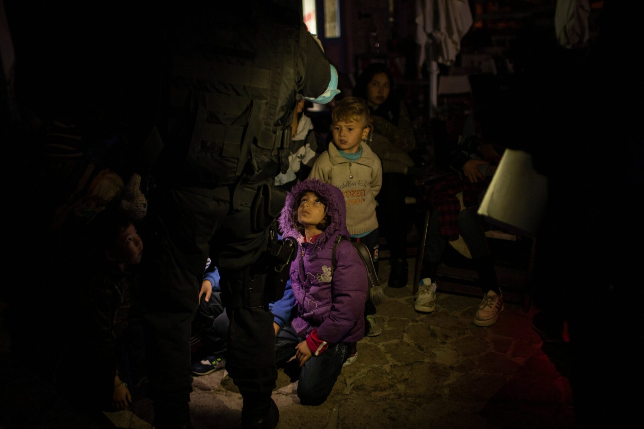 Φρουρός της Frontex μετράει τους διασωθέντες μετανάστες και πρόσφυγες στο μικροσκοπικό λιμάνι της Σκάλας Συκαμιάς, στη Λέσβο. Ανάμεσά τους βρίσκονται πολλά μικρά παιδιά. ASSOCIATED PRESS