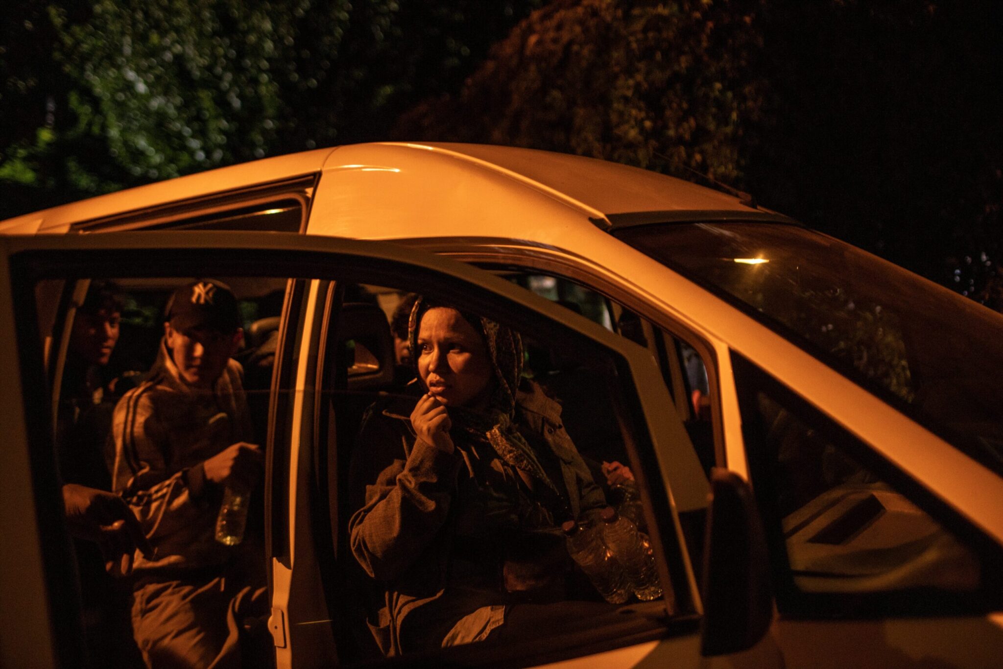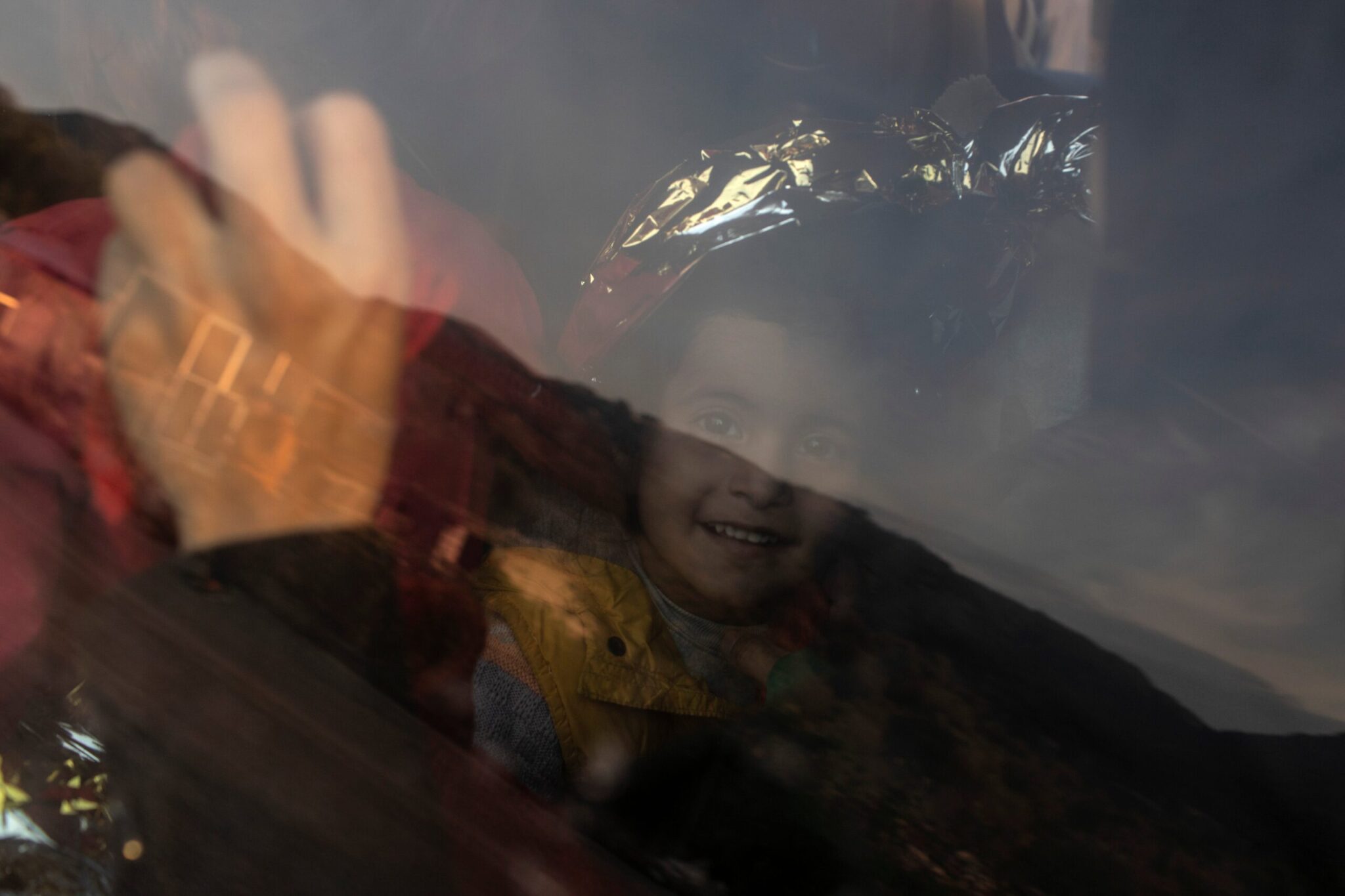 Ενα κορίτσι κοιτάζει μέσα από το βανάκι, μετά την άφιξή του με άλλους μετανάστες στο παραθαλάσσιο χωριό Τσόνια της Λέσβου. Ηταν μια ομάδα ανθρώπων που πέρασαν από την Τουρκία στα ελληνικά παράλια, ταξιδεύοντας στη θάλασσα για πέντε ώρες στοιβαγμένοι σε μια λέμβο από καουτσούκ. ASSOCIATED PRESS