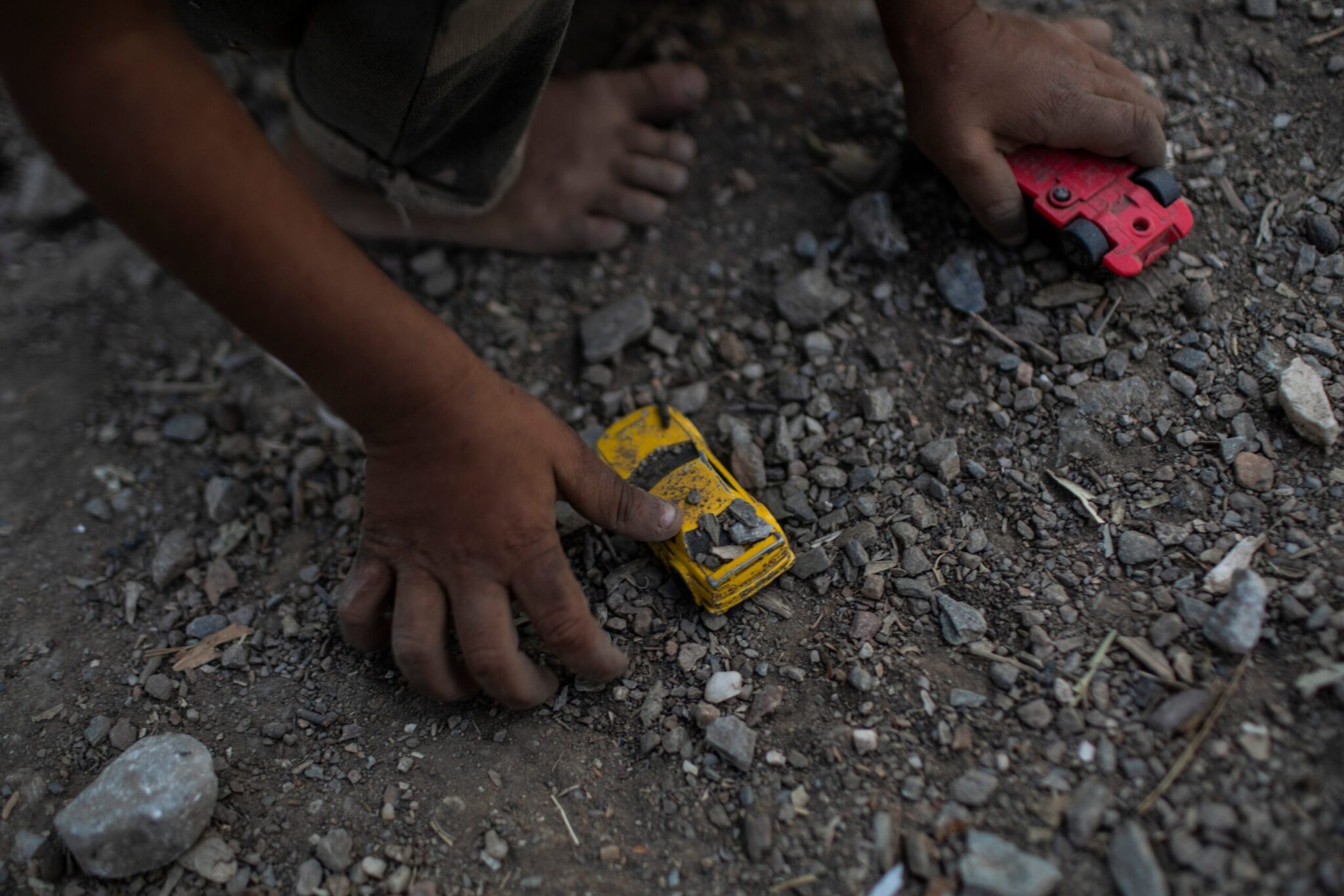 Ενα αγόρι από τη Συρία παίζει με τα αυτοκινητάκια του στη Μόρια. ASSOCIATED PRESS