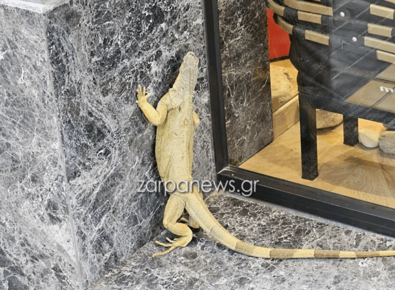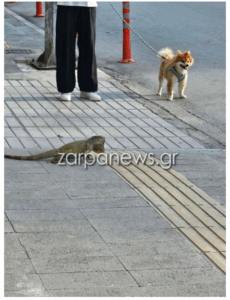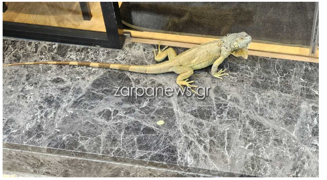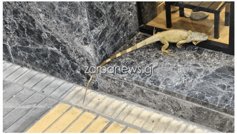 Δεν πίστευαν στα μάτια τους οι πολίτες που περνούσαν το μεσημέρι της Τετάρτης, 19 Νοεμβρίου, από την οδό Μπουνιαλή στο κέντρο των Χανίων, καθώς ένα τεράστιο ιγκουάνα έκανε την εμφάνισή του στον δρόμο κι “έκοβε” βόλτες μπροστά από εμπορικά καταστήματα.