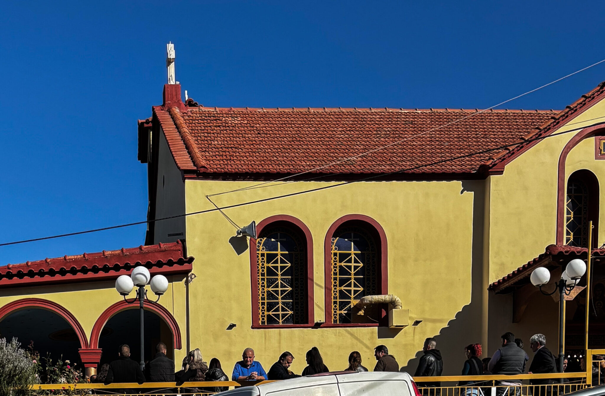 Στο τέλος της κηδείας, άφησαν να πετάξουν στον αέρα δεκάδες λευκά μπαλόνια.