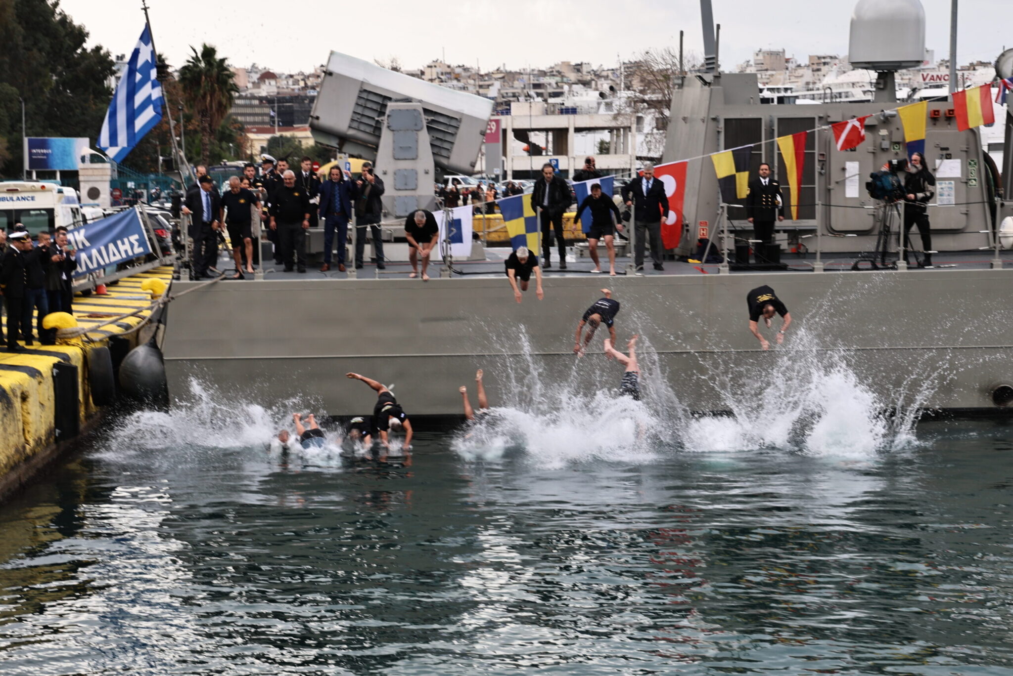Πλοία του Πολεμικού και του Λιμενικού απέδωσαν τιμές κατά τη διάρκεια της τελετής. Σε αυτό επέβαιναν και μέλη του Συνδέσμου Ελλήνων βατραχανθρώπων και υποβρύχιων καταστροφών, ενώ απόστρατοι και εν ενεργεία στρατιωτικοί βούτηξαν στα νερά. Ο πρώτος δέχτηκε τα συγχαρητήρια του Προέδρου της Δημοκρατίας και του Αρχιεπισκόπου Ιερωνύμου.