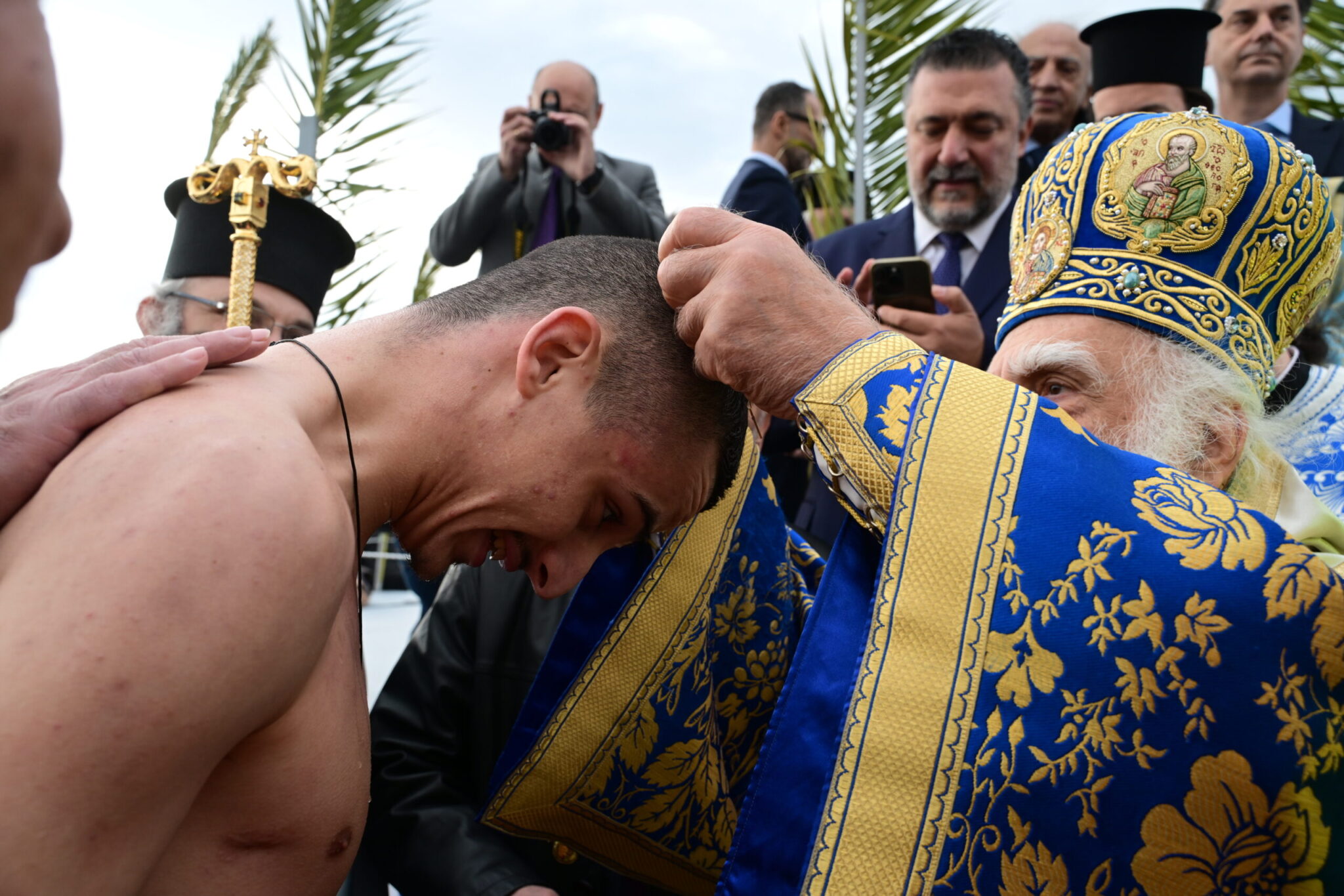 Στον νεαρό άνδρα που έπιασε πρώτος τον σταυρό, παραδοσιακά ο Αρχιεπίσκοπος Κρήτης, έδωσε την ευλογία και το δώρο του, ενώ εγκάρδιες ευχές έδωσε σε όλους τους πιστούς .
