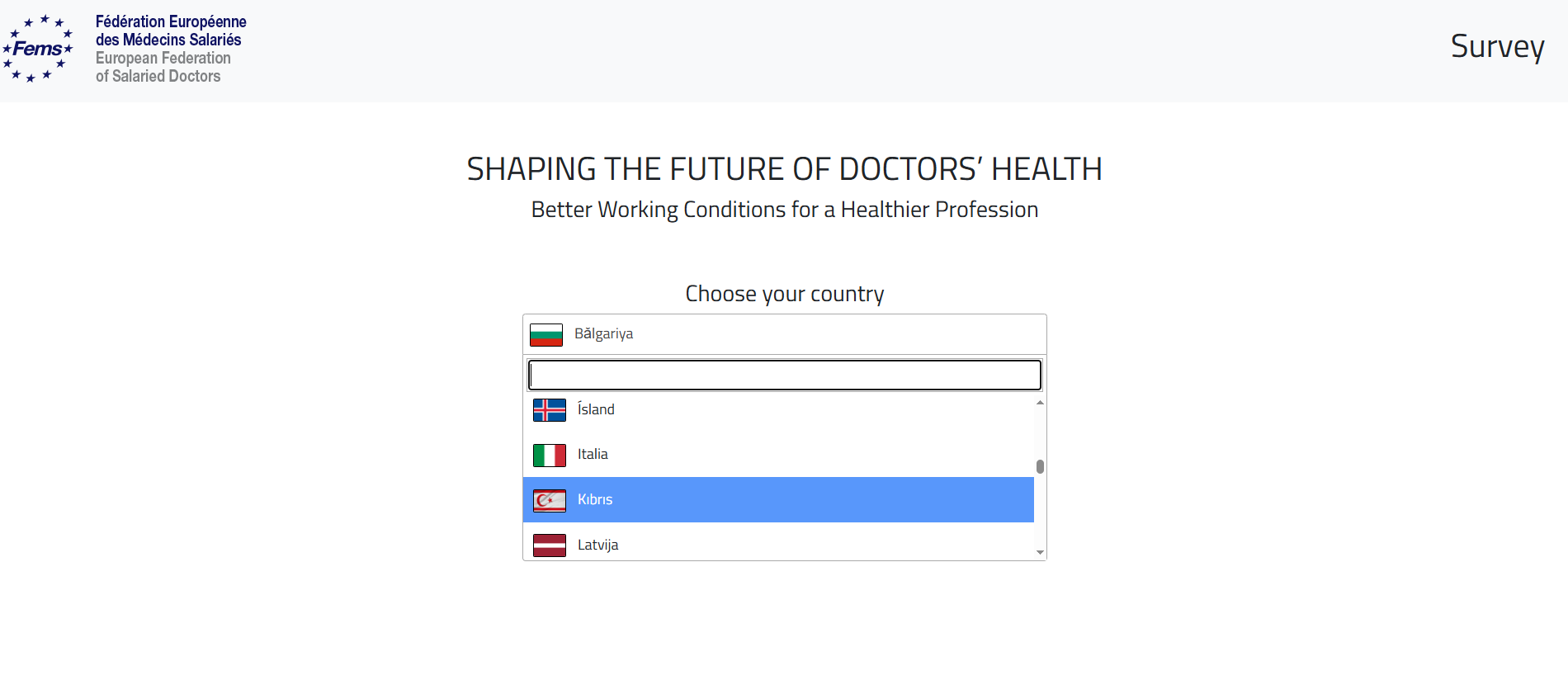 Το ερωτηματολόγιο διακινήθηκε από την UEMS (European Union of Medical Specialists) εκ μέρους της FEMS (Federation Européenne des Médecins Salariés) και προωθήθηκε από τον Πανελλήνιο Ιατρικό Σύλλογο προς τους Ιατρικούς Συλλόγους της χώρας.
