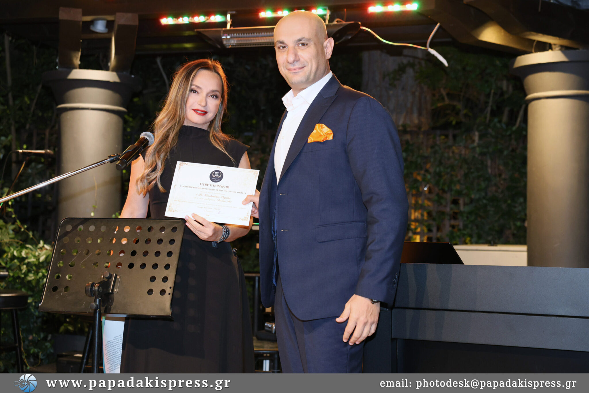 Ακολούθως, απενεμήθη απ’ την Πρόεδρο της Ελληνογαλλικής Ακαδημίας Πολιτιστικής Διπλωματίας, Γεωργία Κούβελα-Πικέ, τιμητική διάκριση για την αέναη προσφορά του στον πλησίον, στον ιδιοκτήτη της Δερματολογικής Κλινικής Derma Act, Δρ. Κωνσταντίνο Παγίδα, που εξήρε το «μεγαλείο του Ομογενειακού Ελληνισμού όπου Γης», και εισαγωγικά συγκίνησε το ακροατήριο καταθέτοντας την προσωπική του μαρτυρία ζώντας ως πολίτης του κόσμου εκτός Μητροπολιτικού κέντρου: