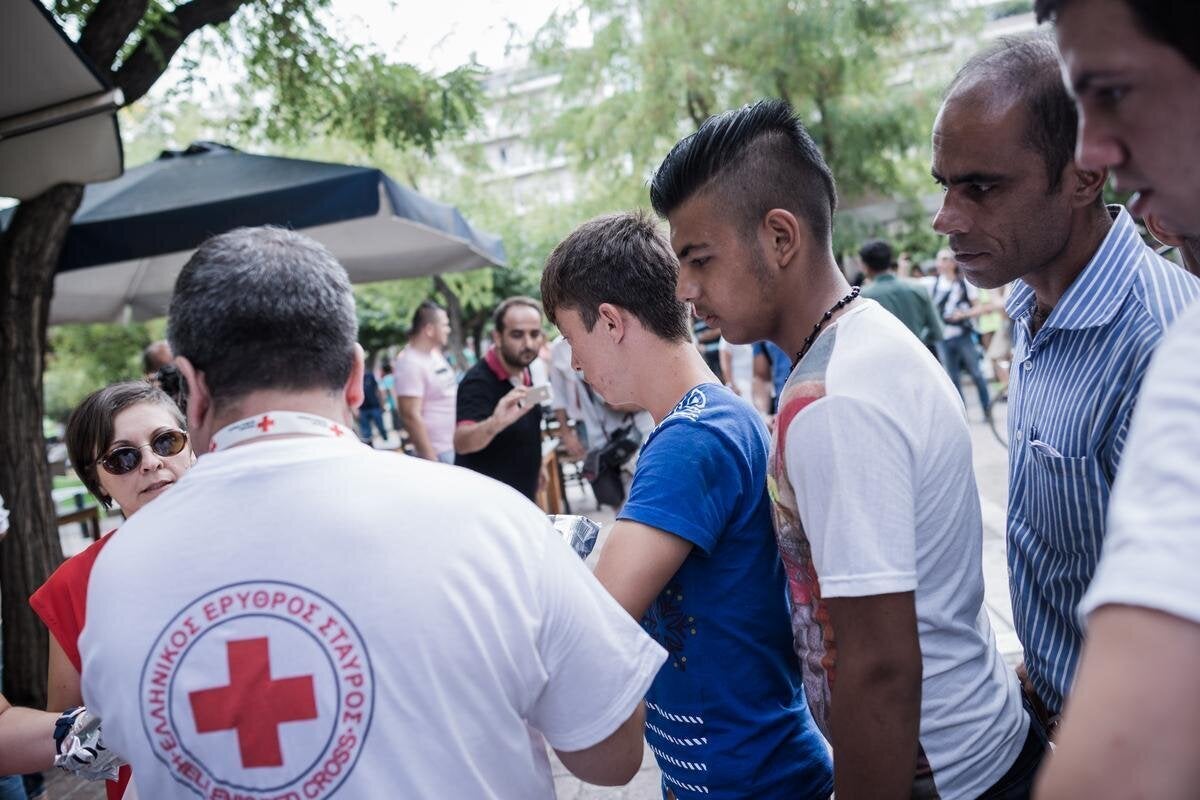 «Κοίτα τους Σύριους που έρχονται…», μου λέει. Μια μεγάλη ομάδα Σύριων , 30- 40 άνθρωποι περνάνε μέσα από την πλατεία, σχεδόν στοιχισμένοι σε μια μακριά σειρά, ο ένας πίσω από τον άλλο, με τις αποσκευές τους στα χέρια και τις πλάτες. Τα πρόσωπά τους κουρασμένα, ούτε μεταξύ τους δε μιλάνε- άνθρωποι που βιάζονται να φτάσουν κάπου. Προπορεύεται, στην κεφαλή αυτής της γρήγορης, σχεδόν σιωπηλής πορείας, ένας συμπατριώτης τους που φαίνεται να ξέρει τα κατατόπια. Ηγέτης: σωτήρας και εκμεταλλευτής των «δικών του» απελπισμένων. Τον παρατηρώ- μεσήλικας, ντυμένος φτωχικά κι αυτός, μου δίνει την εντύπωση ότι κάποτε βρέθηκε στη θέση τους. Ακολουθώ την «ουρά» της «πορείας» τους- δυο νέοι άνθρωποι, ο ένας με πατερίτσες και το πόδι του δεμένο με γάζες, και ένα κοριτσάκι, 7-8 χρονών με το φαγητό, μια σακούλα ψωμιά στα χέρια του. Προσπαθώ να τους μιλήσω. Χαμογελούν- δε ξέρουν αγγλικά. Και βιάζονται. Ο άντρας με την πατερίτσα και το μπανταρισμένο πόδι κάνει υπεράνθρωπη προσπάθεια να ακολουθήσει την ομάδα. Σε ένα σημείο σταματά, ιδρώτας κυλάει από το πρόσωπό του, απογοήτευση από το βλέμμα του. Ο φίλος του τον παίρνει στην πλάτη, θα τον κουβαλήσει αυτός. Σκηνή από τα πεδία των μαχών στο κέντρο της Αθήνας, κάθετα στην Αχαρνών.