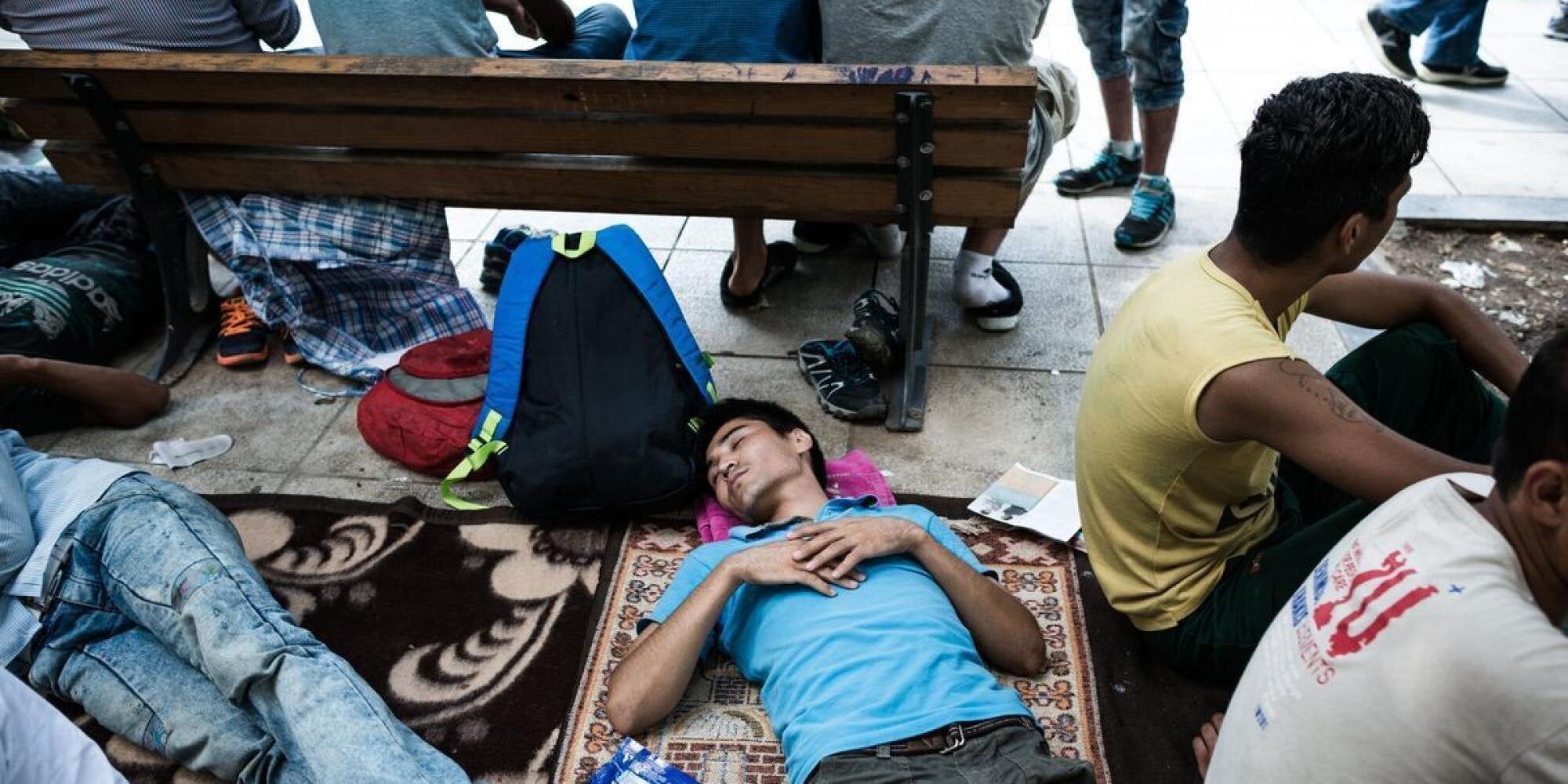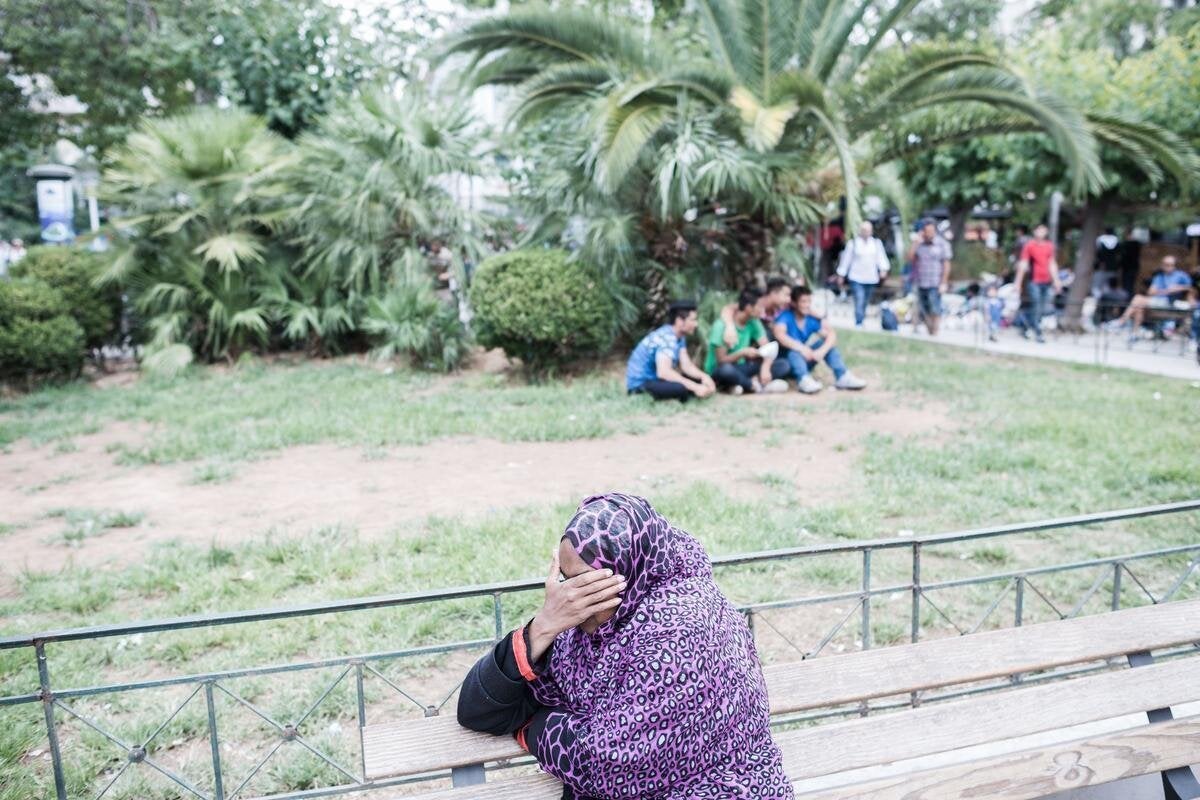 Δίπλα μας οι οικογένειες και οι παρέες συνεχίζουν να περνάνε την ώρα τους, στις ίδιες θέσεις, εκατοντάδες άνθρωποι που περιμένουν το εισιτήριο τους για να εξαφανιστούν, μαζί με όλα τους τα υπάρχοντα, από την ελληνική πλατεία με το ξενόφερτο όνομα, μέσα σε ελάχιστα λεπτά. Μένουν εκεί για να είναι «απίκο», κοντά στους διακινητές, στα μαγαζιά με το συνάλλαγμα στους σταθμούς των τρένων και των λεωφορείων. Όσοι θα χρειαστούν παραπάνω μέρες για να μαζέψουν το ποσό, ή είναι πολύ κουρασμένοι «ψυχή και σώματι», ζούνε στον καταυλισμό του Ελαιώνα, την ανοιχτή δομή προσωρινής φιλοξενίας στην ομώνυμη περιοχή της Αθήνας.