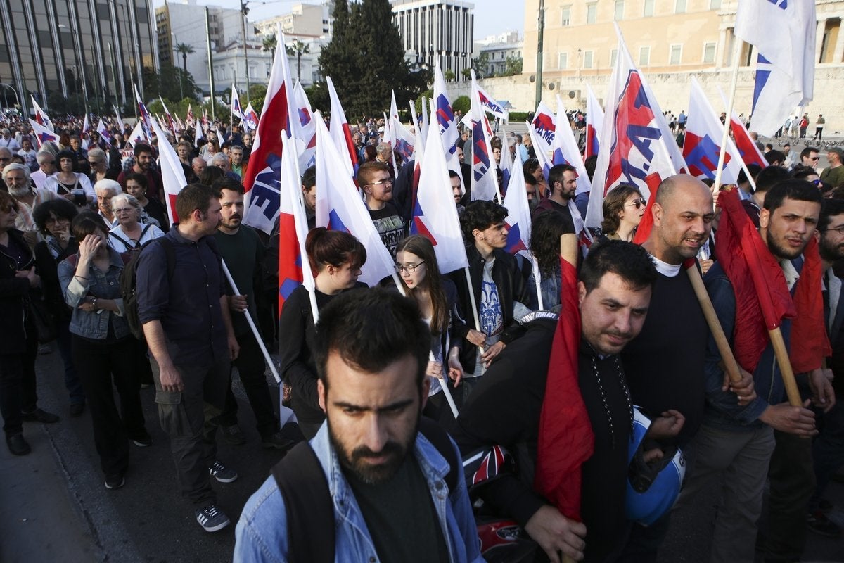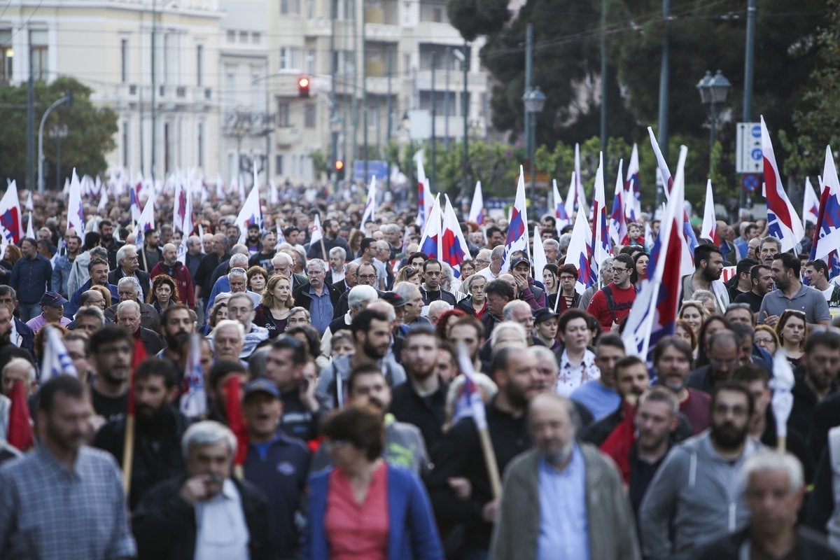 Με μαζικότητα και παλμό, το ΠΑΜΕ διαδήλωσε ενάντια στην επίθεση που πραγματοποιήθηκε τα ξημερώματα του Σαββάτου από ΗΠΑ-Βρετανία-Γαλλία ενάντια στη Συρία, με τη στήριξη, όπως διαδηλώθηκε, του ΝΑΤΟ και της ΕΕ «που υποκρίνονται τους Πόντιους Πιλάτους, ανοίγοντας το δρόμο για τη νέα σφαγή».