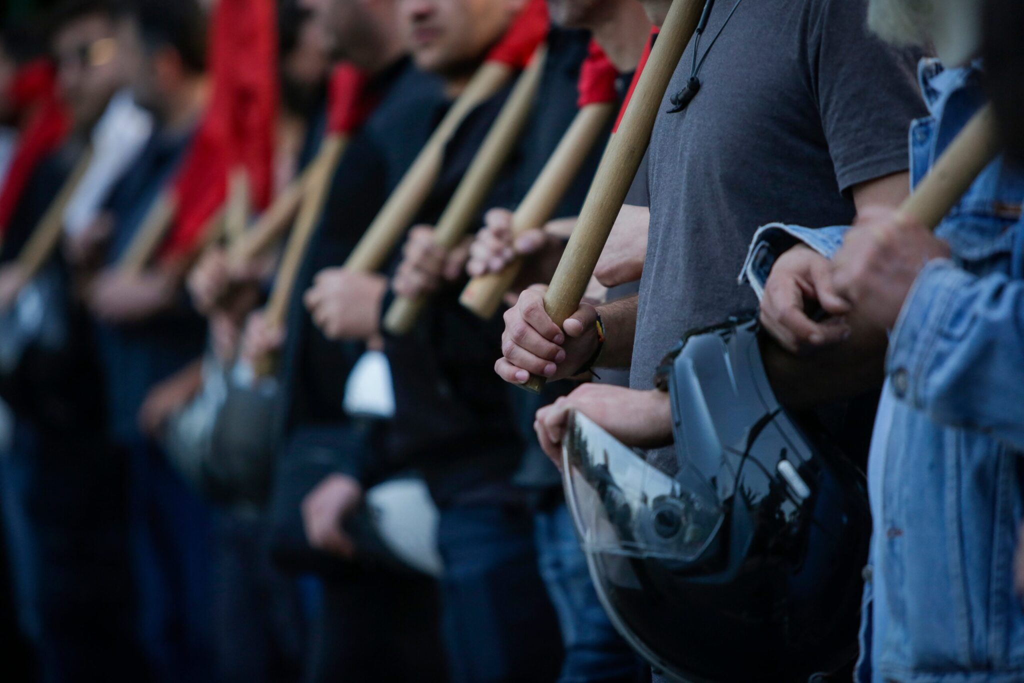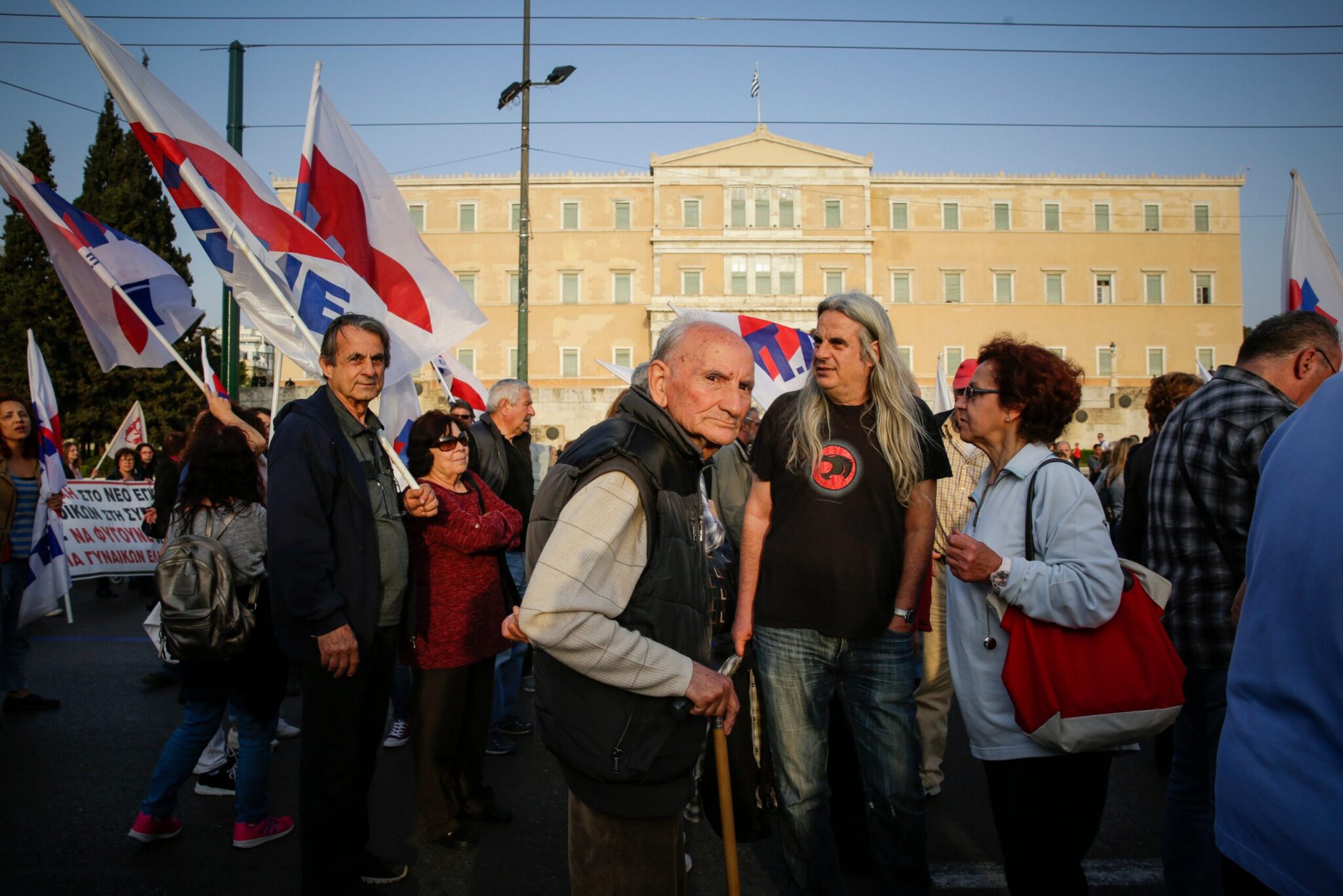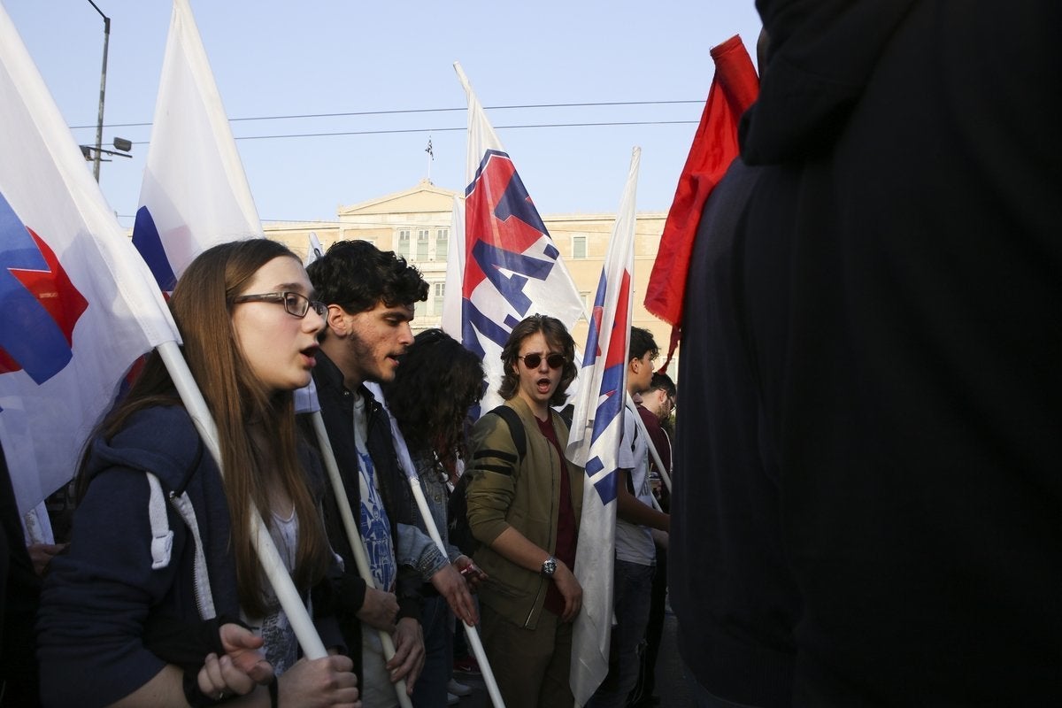 Στο συλλαλητήριο, κεντρικό σύνθημα ήταν ότι οι ιμπεριαλιστές ξαναμοιράζουν τη γη χαράζοντας τα σύνορα με το αίμα των λαών. Οι συγκεντρωμένοι είχαν ως αφετηρία την πλατεία Συντάγματος, ενώ ακολούθησε πορεία προς την αμερικανική πρεσβεία. Οι διαδηλωτές πέταξαν αβγά στα γραφεία της Ευρωπαϊκής Ένωσης στην οδό Β.Σοφίας και, φτάνοντας, στην πρεσβεία των ΗΠΑ.