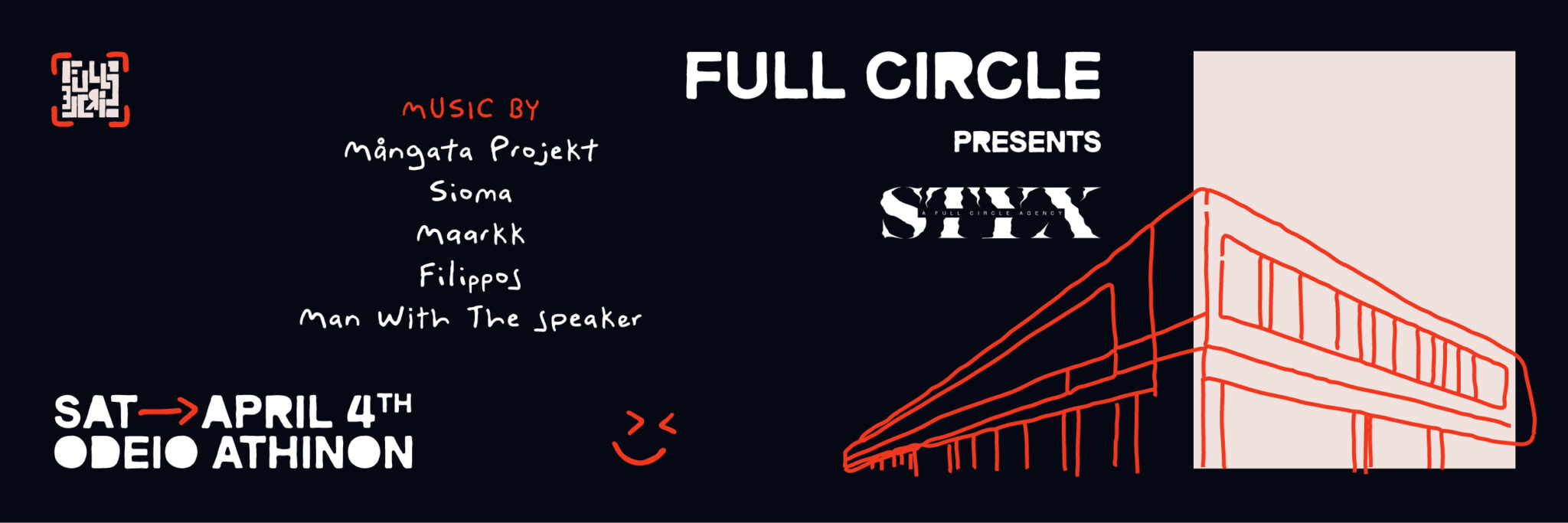 Το Full Circle επιστρέφει δυναμικά το Σάββατο 4 Απριλίου, σε έναν από τους πιο εμβληματικούς πολιτιστικούς χώρους της πόλης, το Ωδείο Αθηνών, για να παρουσιάσει το STYX Agency — ένα σύγχρονο agency διαχείρισης και εκπροσώπησης καλλιτεχνών, που έρχεται να επαναπροσδιορίσει τη σχέση μεταξύ δημιουργού, μουσικής και κοινού.
