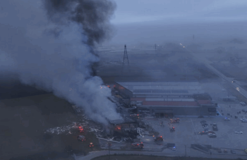 Με την έκρηξη άνοιξαν τα διπλανά πάνελ και έπεσε μέρος της σκεπής, ενώ έπιασε αμέσως φωτιά το κτήριο.