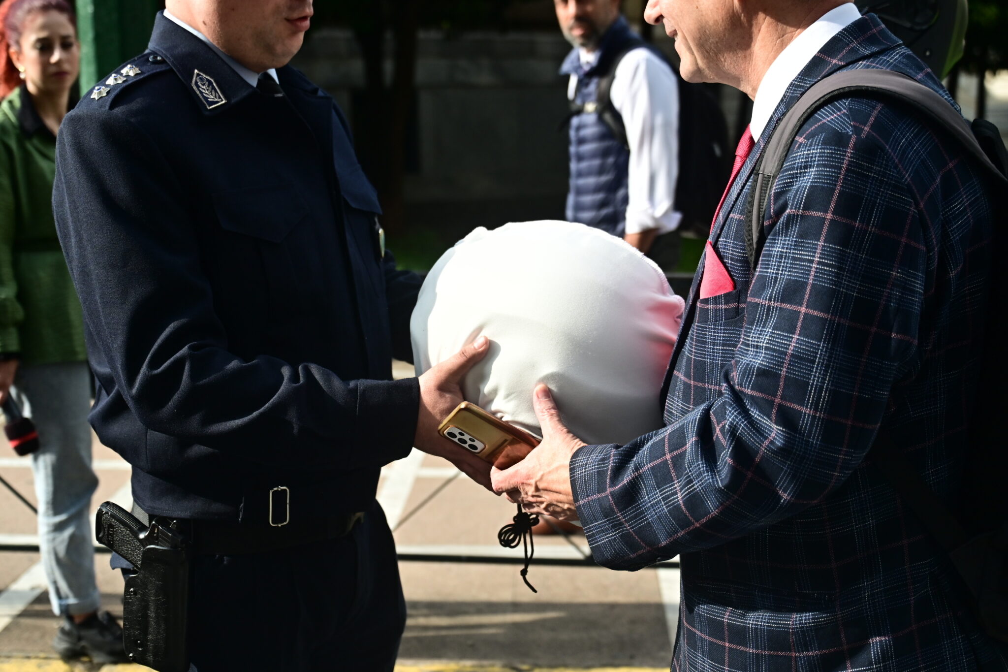Αστυνομικοί της Τροχαίας σταματούν αυτή την ώρα στην Αττική μοτοσικλετιστές στην άκρη του δρόμου και δίνουν δωρεάν κράνη σε όσους δεν τα φορούν, όπως φαίνεται στις φωτογραφίες.