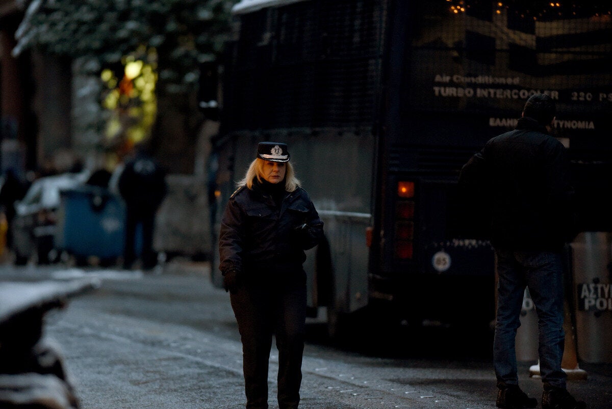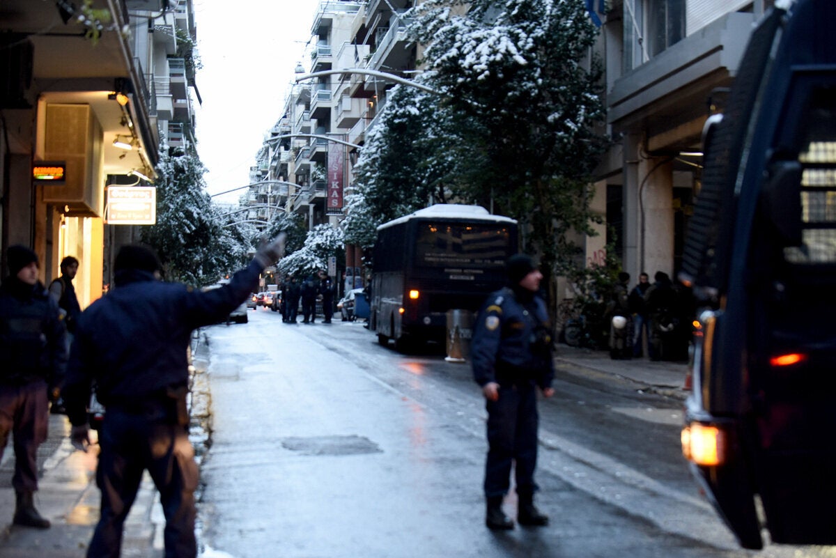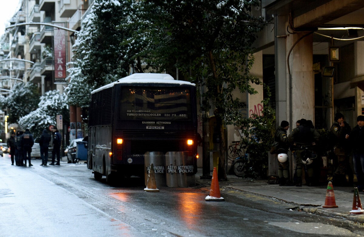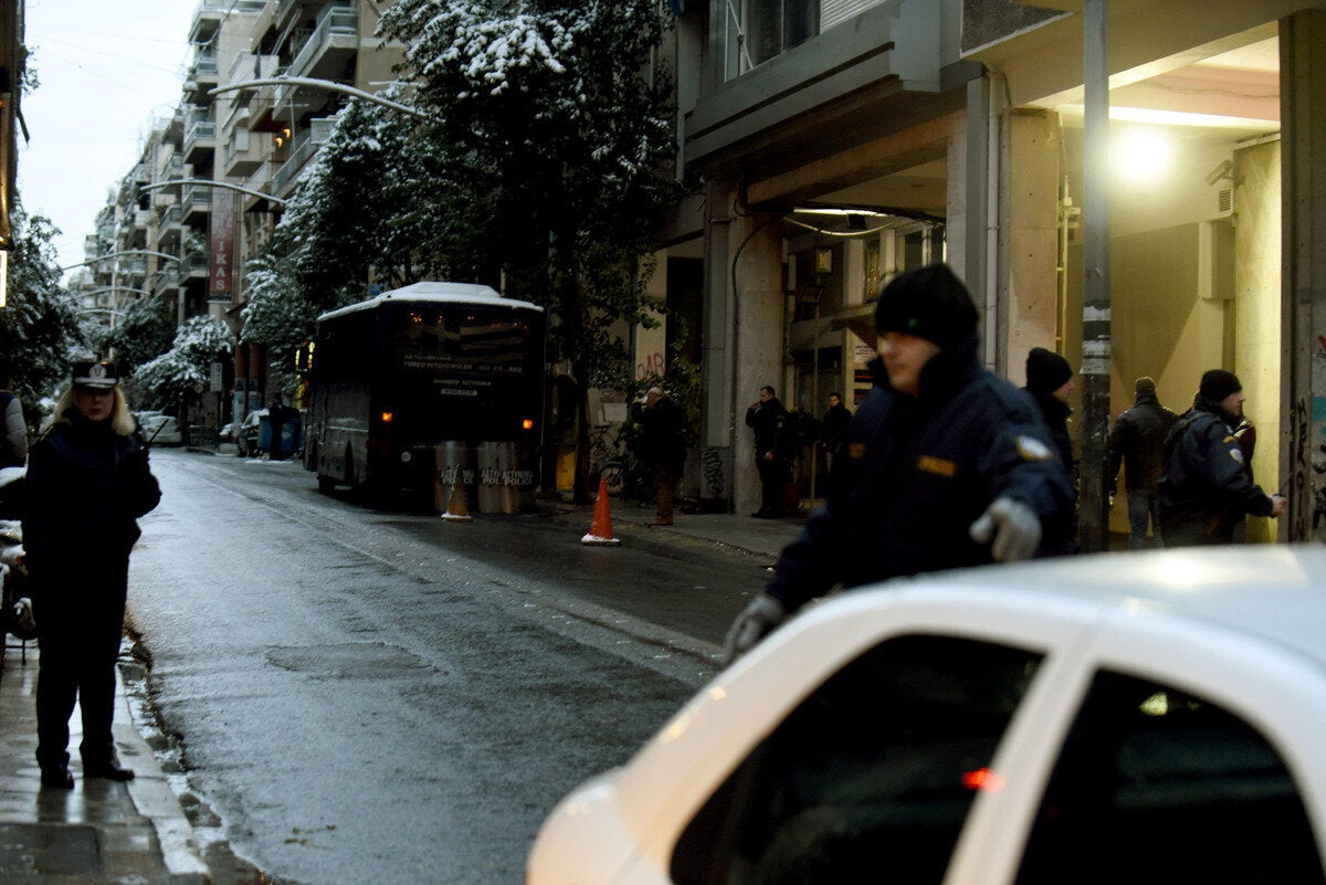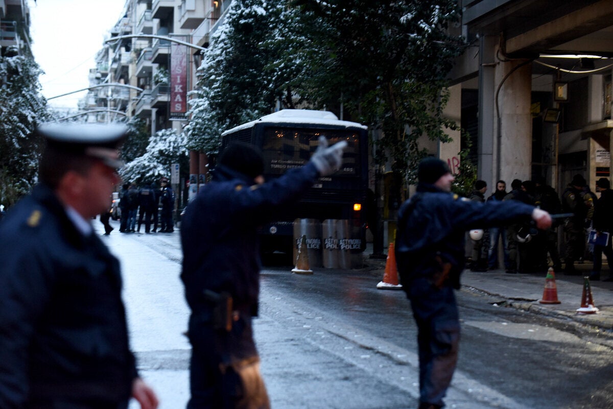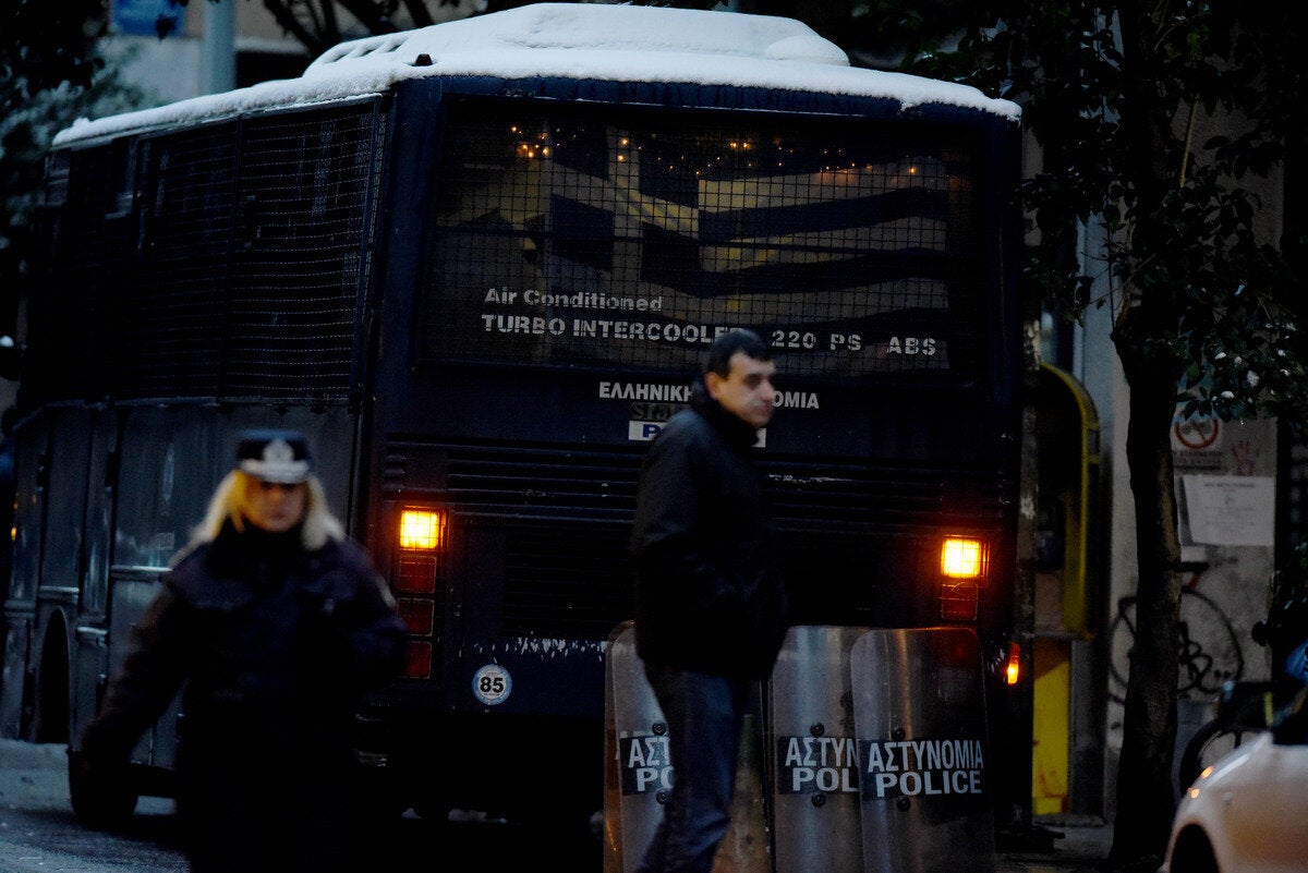 Οι σφαίρες πέτυχαν έναν άνδρα των ΜΑΤ στο πόδι, την τζαμαρία μίας κάβας που βρίσκεται στο σημείο και το παρμπρίζ της κλούβας.