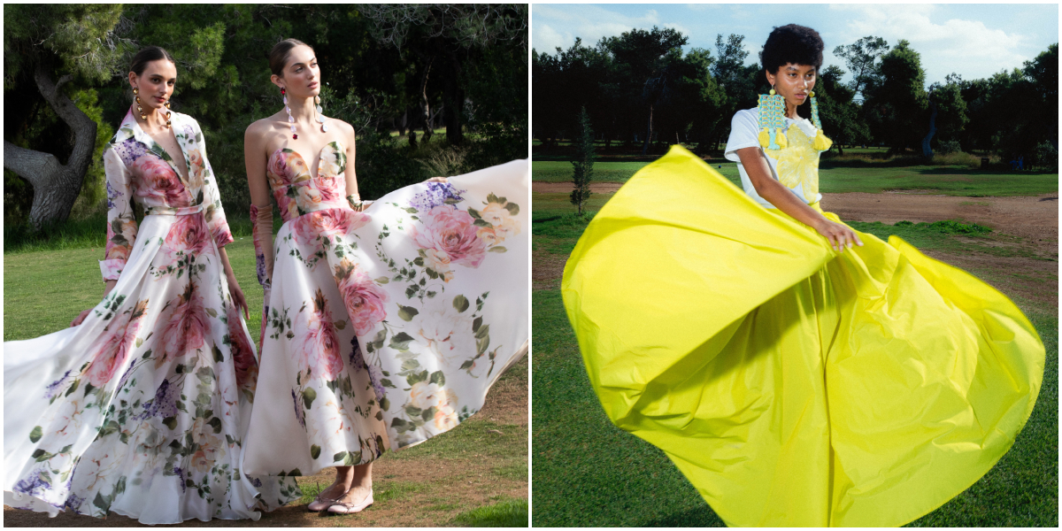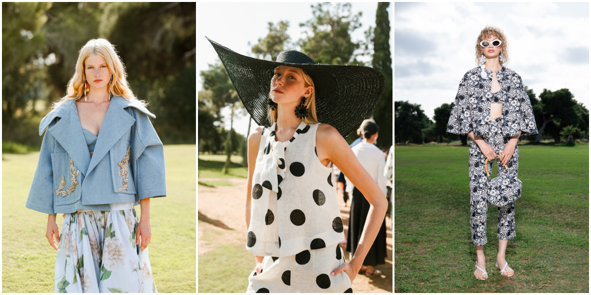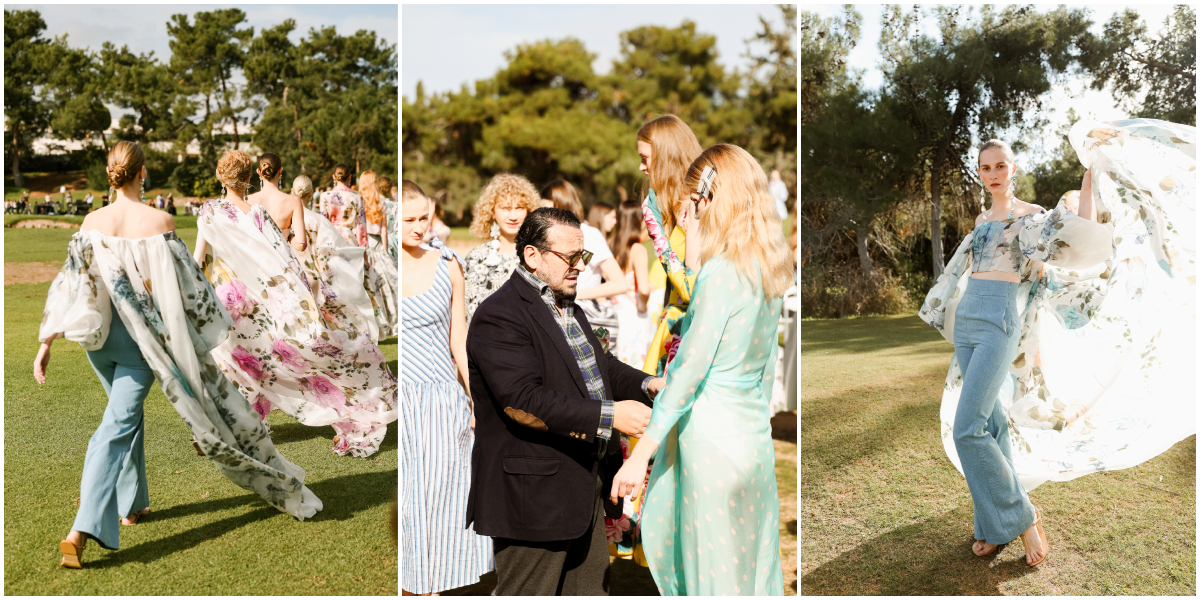 Ξεχωρίζουν τα flowing maxi φορέματα με bold florals, τα structured blazers με χειροποίητες λεπτομέρειες, τα αέρινα σιφόν σύνολα που κινούνται με κάθε βήμα. Αναπόσπαστο κομμάτι κάθε look, τα κοσμήματα του Περικλή Κονδυλάτου του jewelry designer που έχει ντύσει τη Lady Gaga και τη Mindy Kaling στο Met Gala: βαμβακερές φούντες συνδυασμένες με κρύσταλλα, χειροποίητα λουλούδια από χρυσό και ασημί μέταλλο, statement σκουλαρίκια που συμπληρώνουν κάθε ενότητα της συλλογής. Τα oversized καπέλα που θυμίζουν Ριβιέρα ολοκληρώνουν το καλοκαιρινό vibe.