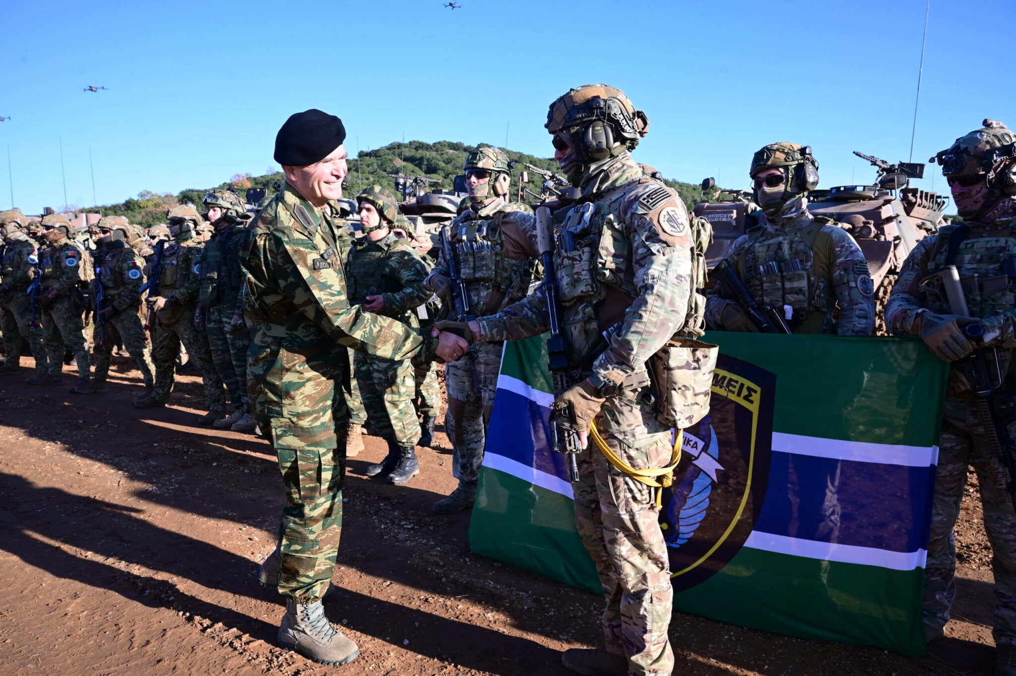 Η απόκρουση και απώθηση μιας εισβολής από αντίπαλο αντίστοιχων δυνατοτήτων (peer adversary), σε όλο το φάσμα που θα περιελάμβανε κάτι τέτοιο, ήταν το αντικείμενο των πολυεθνικών ασκήσεων Loyal Dolos-25 και Golden Sword-25 που διεξήχθησαν στην ευρύτερη περιοχή της Θεσσαλονίκης, με αποκορύφωμα την Ημέρα Διακεκριμένων Επισκεπτών (DV-Day) της Τακτικής Άσκησης Μετά Στρατευμάτων (ΤΑΜΣ) Golden Sword-25, χθες Πέμπτη.