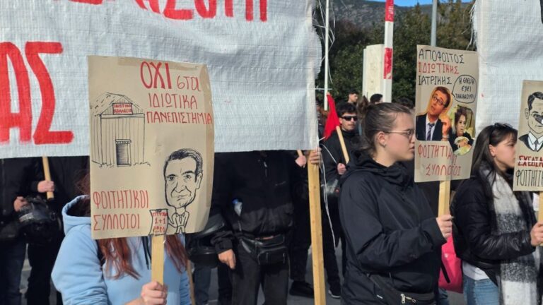 Οι φοιτητές διαμαρτύρονται για 330.000 άδικες, όπως σημειώνουν, διαγραφές φοιτητών και για τα πειθαρχικά μέτρα.