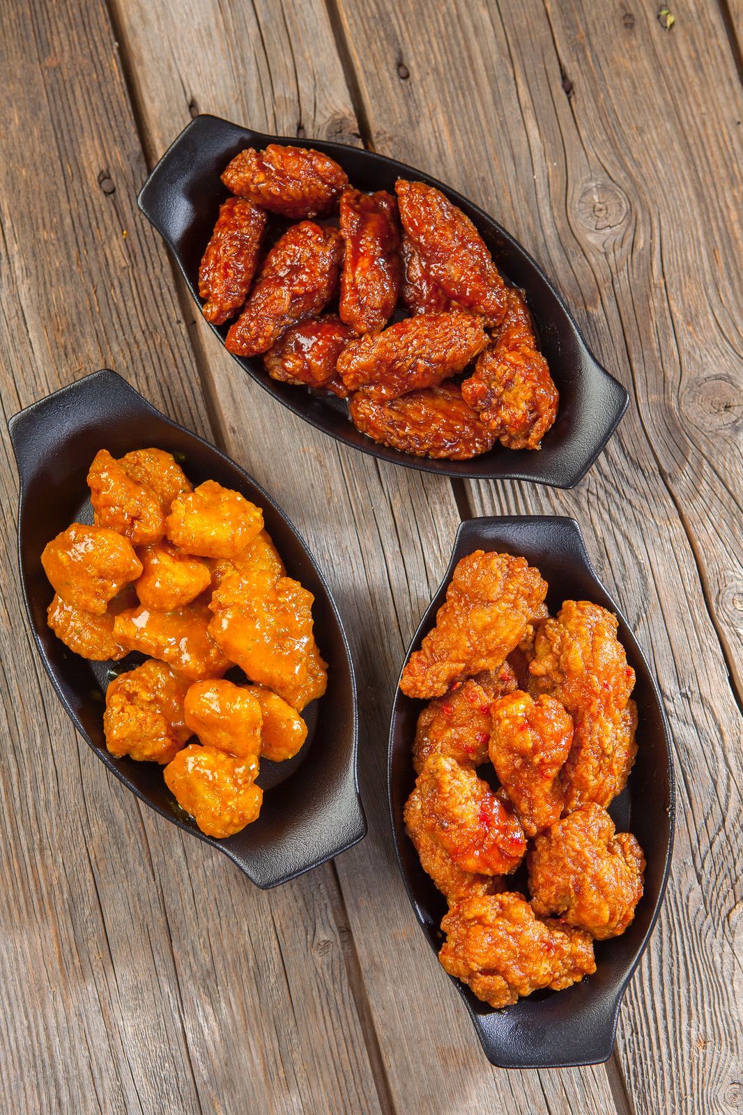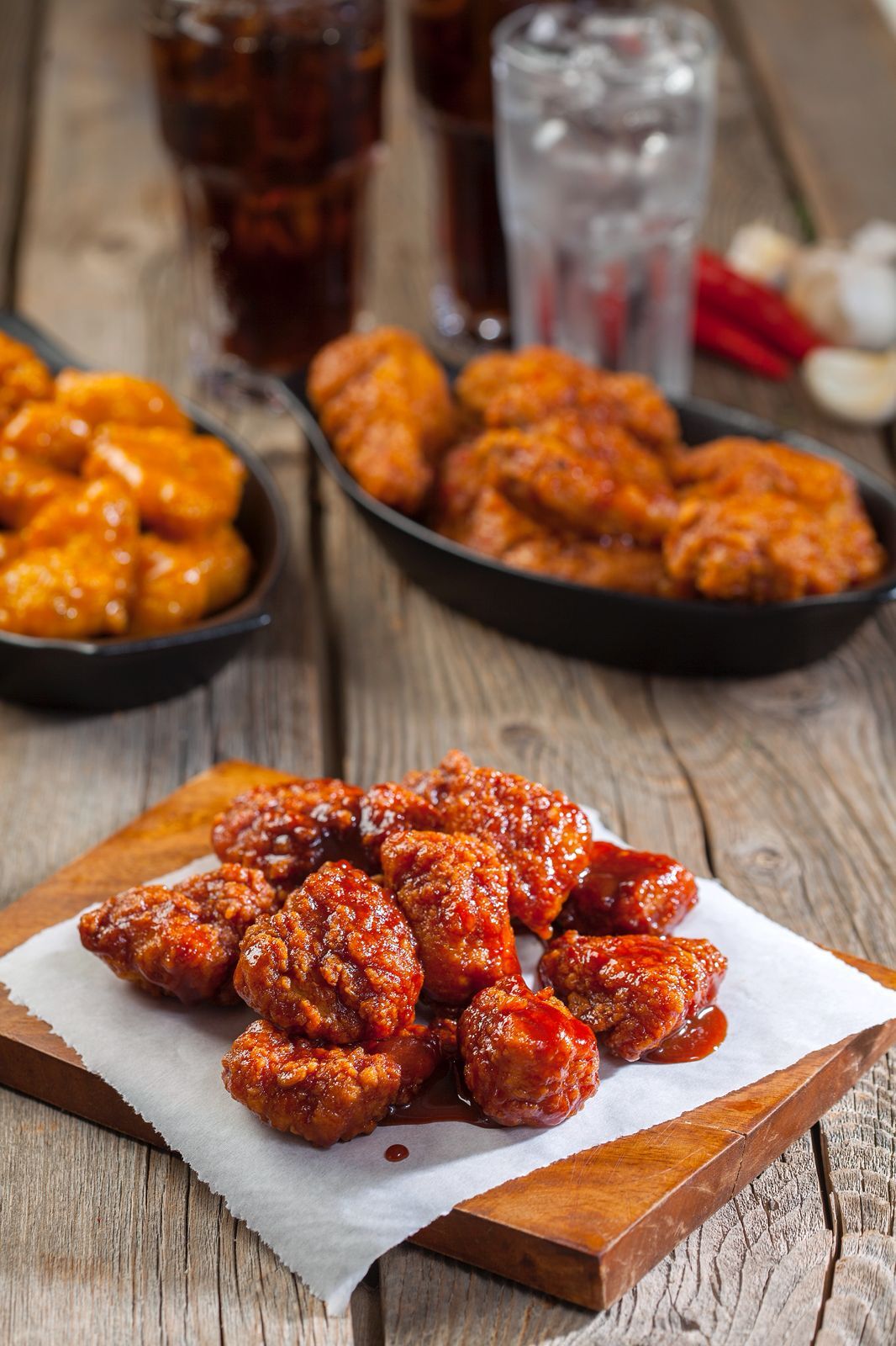 Το καλύτερο είναι ότι μπορείς είτε να ζητήσεις να σου έρθουν οι μπουκιές και οι φτερούγες ήδη βουτηγμένες στις sauces, ώστε να «ποτίσουν» νοστιμιά χωρίς να χάσουν την crispy υφή τους, είτε να τις πάρεις ξεχωριστά, για να βουτάς όσο και όπως θέλεις.