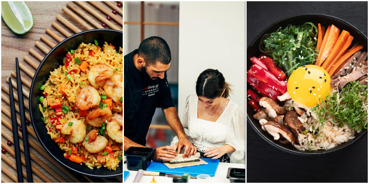 Τα WokShop Μαθήματα γίνονται σε Γλυφάδα, Κηφισιά και Σύνταγμα, κρατάνε 2 ώρες, και ξεκινάνε από €28/άτομο. Δεν χρειάζεται εμπειρία μαγειρικής, μόνο διάθεση.