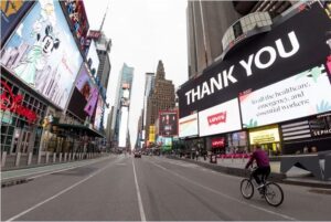 Η 7η Λεωφόρος στην Times Square στη Νέα Υόρκη, Κυριακή του Πάσχα, 19 Απριλίου, 2020.