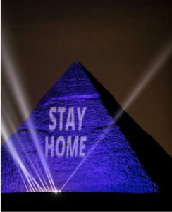 Οι πυραμίδες του Καϊρου, φωταγωγημένες με το μήνυμα «Μείνετε Σπίτι», το Μ.Σάββατο, 18 Απριλίου, 2020.
