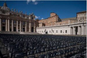 Μια άποψη από την άδεια από κόσμο πλατεία του Αγίου Πέτρου, στο Βατικανό, στις 8 Μαρτίου, 2020.