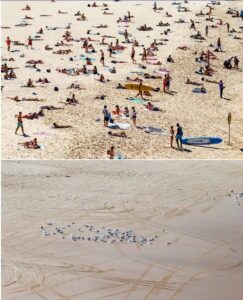 Η παραλία Μπόντι, στο Σίδνεϊ της Αυστραλίας. Επάνω γεμάτη κόσμο, στις 20 Μαρτίου και κάτω κλειστή στο κοινό, στις 22 Μαρτίου, 2020.