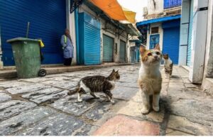 Γάτες περιφέρονται στα στενά δρομάκια της Μεδίνας, στην Τυνησία.