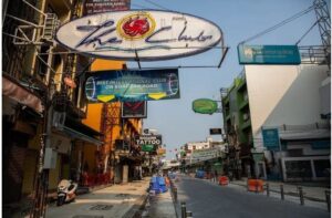 Άδειοι δρόμοι, κλειστά μπαρ και εστιατόρια, στην οδό Κάο Σαν, στην Μπανγκόκ, την Μ.Τετάρτη, 15 Απριλίου, 2020. Από τις 13 έως τις 15 Απριλίου, οι βουδιστές γιορτάζουν το νέο έτος, γνωστό ως «Σονγκράν».