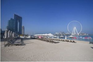 Άδειες ξαπλώστρες στην παραλία Τζουμέιρα στο Ντουμπάι, στις 12 Μαρτίου, 2020.