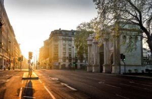 Η Όξφορντ Στριτ, στο ύψος της Μάρμπλ Άρτς, στο Λονδίνο, την Μ.Πέμπτη, 16 Απριλίου, 2020.