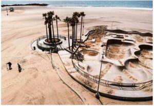 To Βένις Σκέιτ Παρκ, στην παραλία Βένις της Καλιφόρνια, γεμάτο άμμο, ούτως ώστε να αποτρέπει τους φίλους του σκέιτμπορντ από την χρήση του, την Μ.Παρασκευή, 17 Απριλίου.