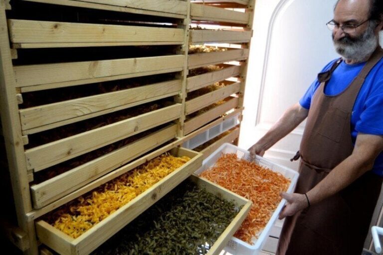 «Τα ζυμαρικά μας αποξηραίνονται σε θερμοκρασία 35ο και σε διάρκεια 4 ημερών, σε αντίθεση με τα βιομηχανικά ζυμαρικά που ψήνονται στους 120ο όπου χάνουν πολλά θρεπτικά συστατικά τους. Χαιρόμαστε που τα ζυμαρικά μας τα προτιμούν όχι μόνο οι ιδιώτες, αλλά και τα ξενοδοχεία και τα εστιατόρια του νησίου» δηλώνει ο κυρ-Γιώργος που πάει να παίξει με τα χρώματά του.