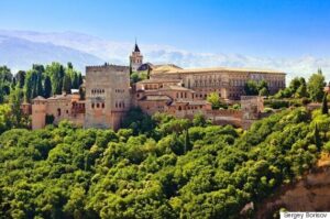 Δύο λόφοι, δύο ποτάμια, μεσαιωνικά σπίτια με κόκκινα κεραμίδια και λουλούδια και, στο ψηλότερο σημείο, το ”Κόκκινο Φρούριο”, το παλάτι των Μαυριτανών σουλτάνων, γνωστό απλά ως Αλάμπρα. Αυτή είναι η Γρανάδα, η οποία δεν μοιάζει με καμία άλλη ισπανική πόλη. Έχει δικό της χαρακτήρα, τον οποίο οφείλει στους Μαυριτανούς. Τον 13ο αιώνα η Γρανάδα αντιστεκόταν ως η τελευταία ισλαμική πρωτεύουσα της Ισπανίας. Εδώ κατέφυγαν χιλιάδες Μαυριτανοί τεχνίτες εγκαταλείποντας τη Σεβίλλη και την Κόρδοβα. Η Γρανάδα τούς αγκάλιασε κι εκείνοι της χάρισαν τη λεπτή ομορφιά της αραβικής αρχιτεκτονικής. Το 1492, η πόλη άλλαξε χέρια καθώς ο τελευταίος σουλτάνος, ο Boabdil, την παρέδωσε στους Καθολικούς βασιλείς Ισαβέλλα και Φερδινάνδο, οι οποίοι έδωσαν εντολή για τον εκχριστιανισμό της πόλης. Τα τζαμιά μετατράπηκαν σε εκκλησίες και, μέσα στην Αλάμπρα, χτίστηκε το αναγεννησιακό Palacio του Carlos V, εγγονού της Ισαβέλλας. Μια παραφωνία που σε τίποτα δεν μπόρεσε να συναγωνιστεί το ισλαμικής αρχιτεκτονικής σύμπλεγμα. Το μάτι ακολουθεί την αυστηρή γεωμετρική σύνθεση της πόλης: τα μυτερά καμπαναριά των εκκλησιών, τις κόκκινες σκεπές των σπιτιών καλυμμένες από λουλούδια και βρύα, τους πυργίσκους των carmen, τα ολόισια κυπαρίσσια που στριμώχνονται ανάμεσά τους. Και, στην κορυφή του απέναντι λόφου, η διάσημη Αλάμπρα, το περίτεχνο παλάτι και φρούριο των Μαυριτανών μοναρχών. Η Αλάμπρα, μαζί με το παλάτι Χενεραλίφε και τη μεσαιωνική γειτονιά Αλμπαϊσίν ανήκουν στη λίστα της Unesco από το 1984.
