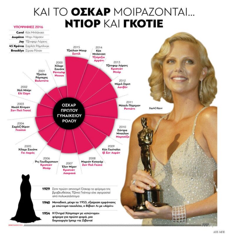Μετρώντας πιέτες, παγιέτες, βολάν και πολλά μέτρα σουά σοβάζ και κρεπ ντε σιν το συμπέρασμα είναι ότι οι «νικητές» Οίκοι Μόδας είναι οι Ντιόρ και Ζαν Πολ Γκοτιέ. Είναι οι πλέον πολυφορεμένοι με …ισοπαλία. Ντιόρ φόρεσε η Ρις Γουίδερσπουν (2006) και η Τζένιφερ Λόρενς (2013).Ζαν Πολ Γκοτιέ επέλεξε η Νικόλ Κίντμαν (2003) και η Μαριόν Κοτιγιάρ (2008).